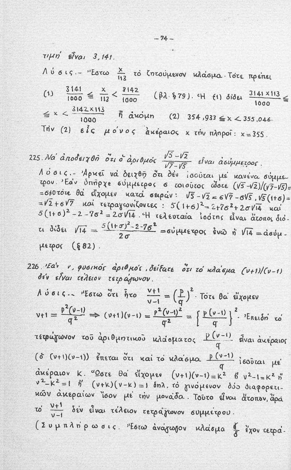 Σχολικό εγχειρίδιο Μαθηματικών Γυμνασίου που είναι χωρισμένο σε θεωρήματα, παραδείγματα και ασκήσεις και περιλαμβάνει στοιχεία Ανώτερης Άλγεβρας και Μαθηματικής Ανάλυσης.