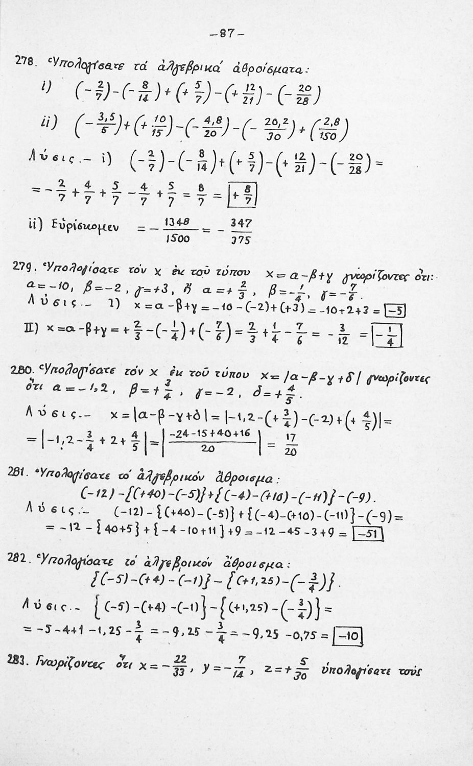 Παρουσίαση περιεχομένου: Μαθητικό βοήθημα Μαθηματικών που περιλαμβάνει λύσεις των ασκήσεων Άλγεβρας.