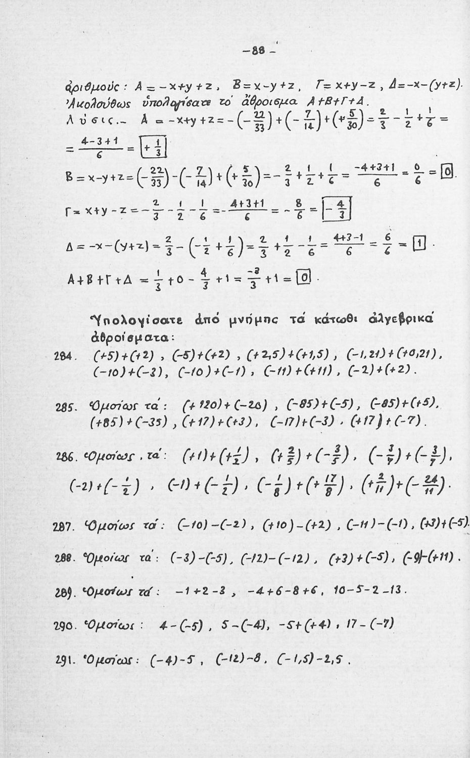Σχολικό εγχειρίδιο Άλγεβρας Γυμνασίου χωρισμένο σε θεωρία και ασκήσεις.