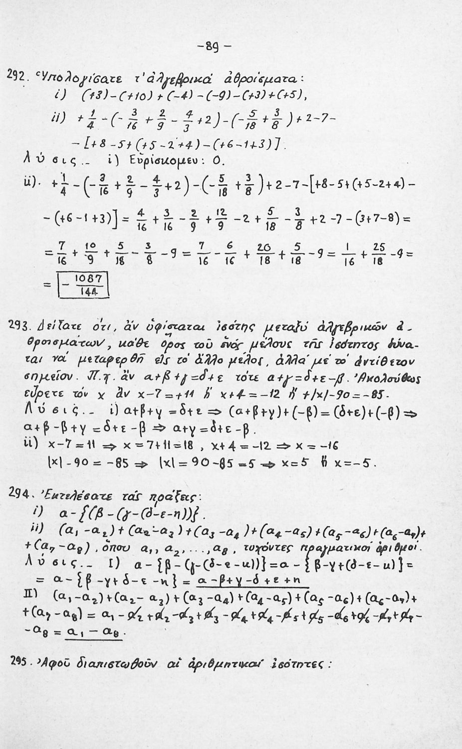 Σχολικό εγχειρίδιο Άλγεβρας για τα Γυμνάσια χωρισμένο σε θεωρία και ασκήσεις. Ο συγγραφέας ήταν καθηγητής στο Πανεπιστήμιο Αθηνών.