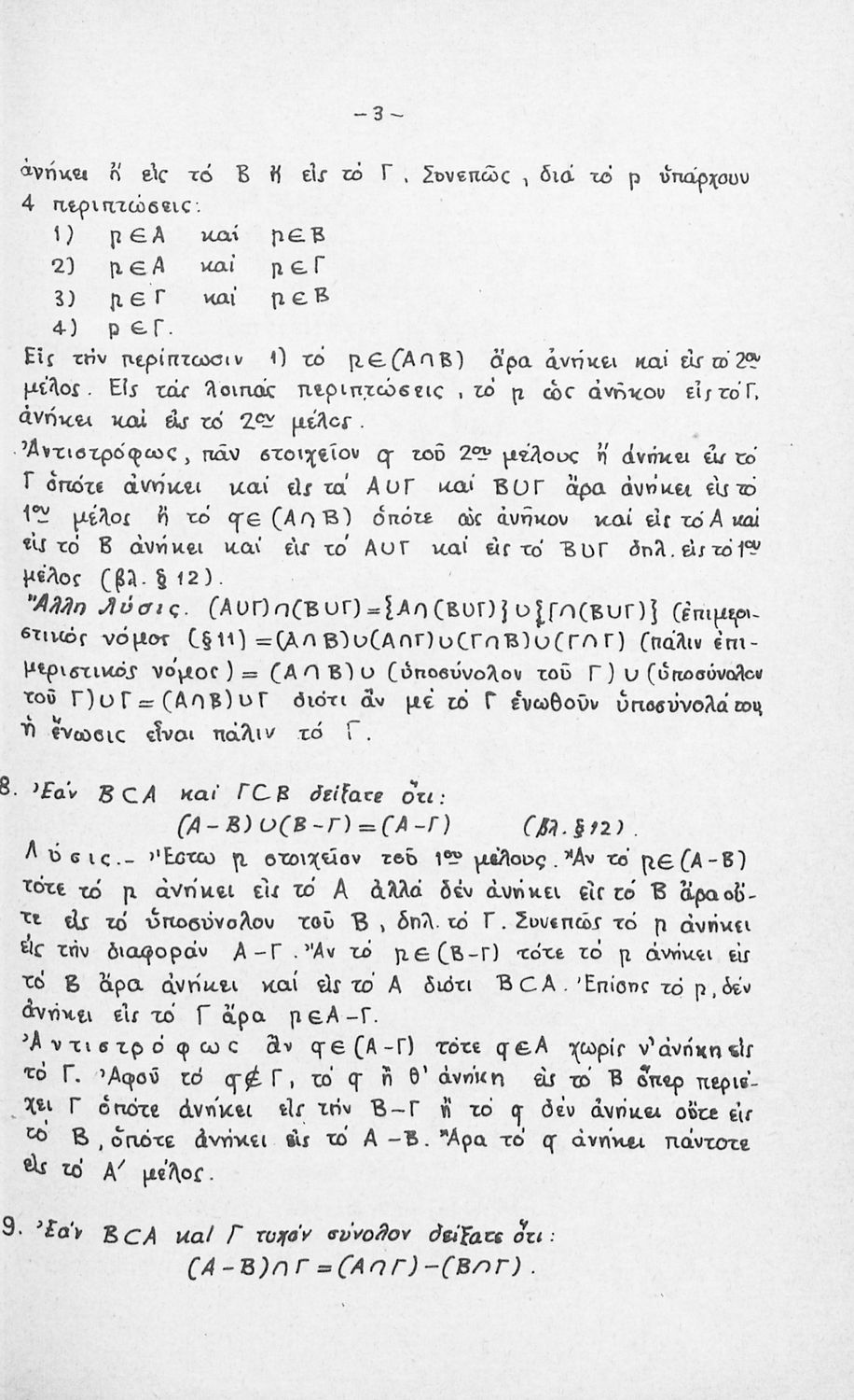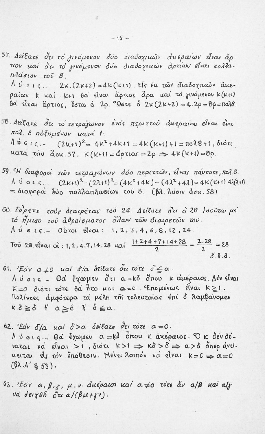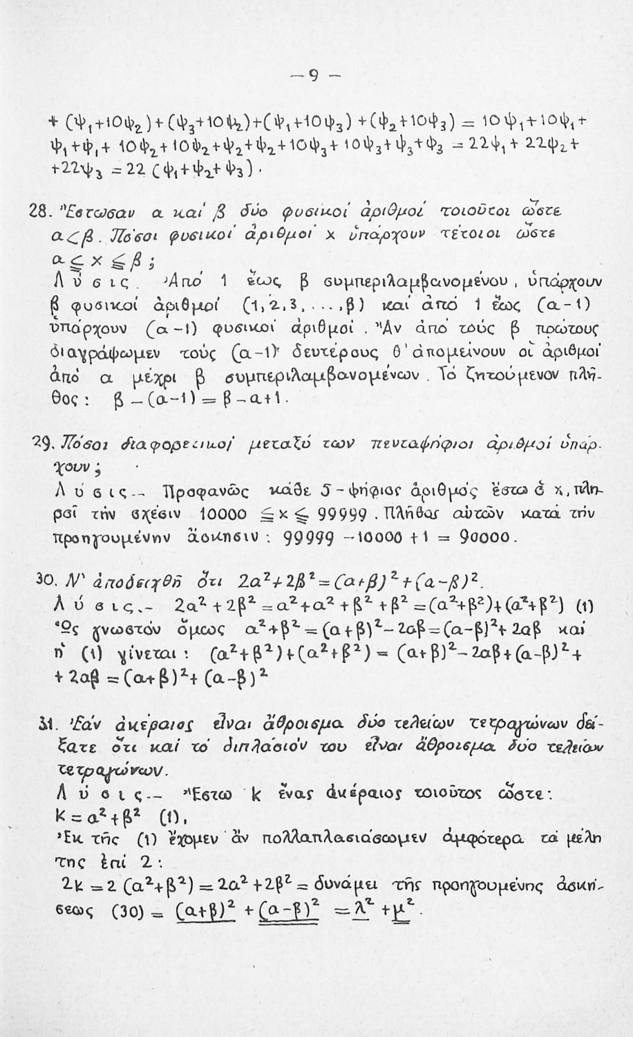 Σχολικό εγχειρίδιο Μαθηματικών Γυμνασίου που είναι χωρισμένο σε θεωρήματα, παραδείγματα και ασκήσεις και περιλαμβάνει στοιχεία Ανώτερης Άλγεβρας και Μαθηματικής Ανάλυσης.