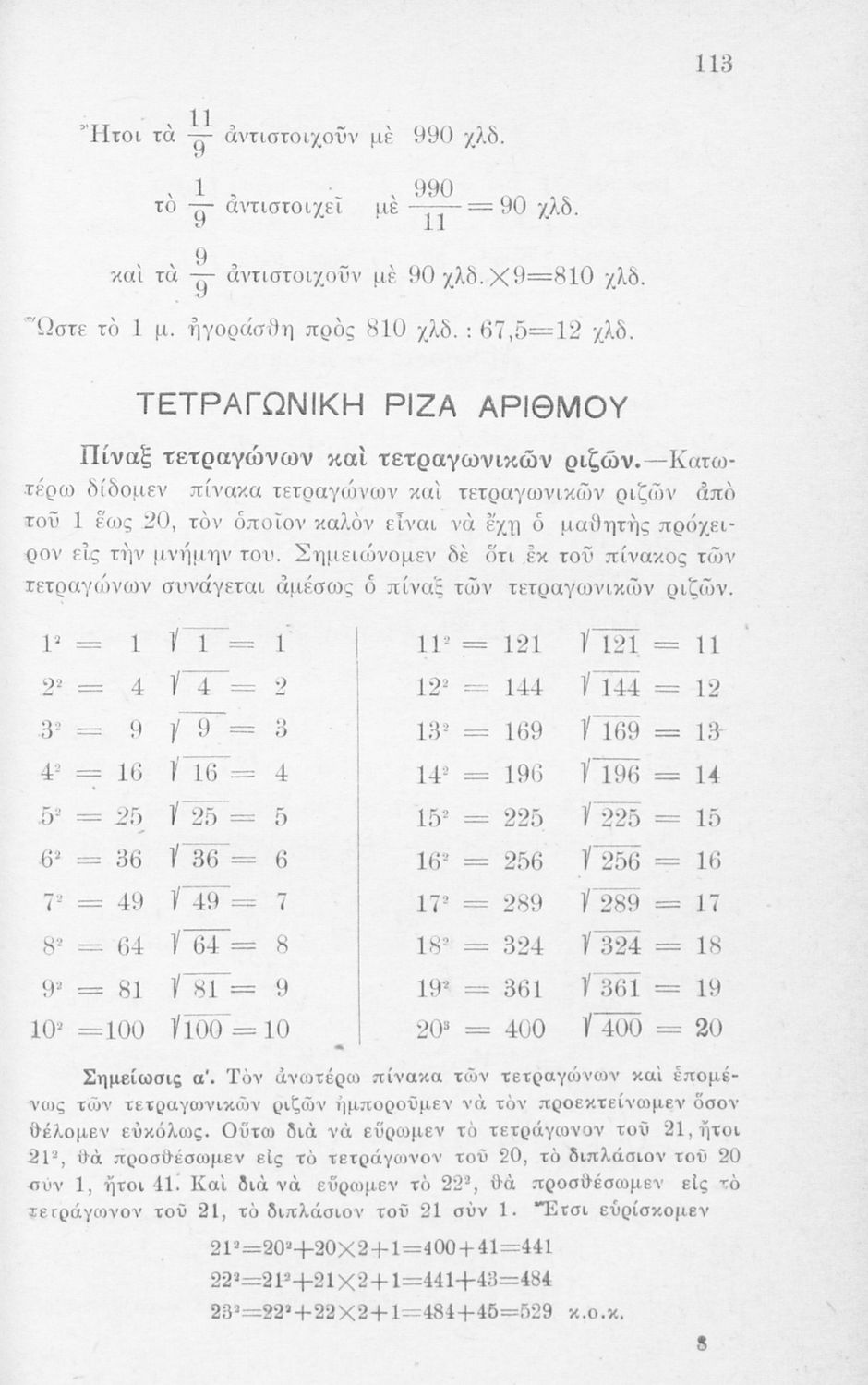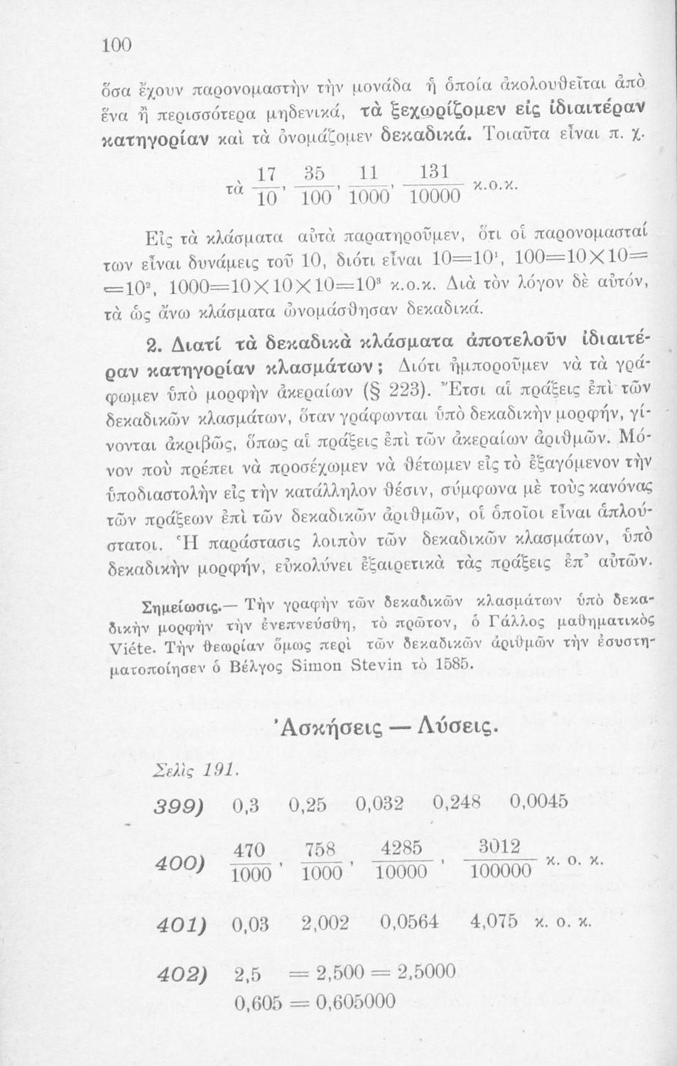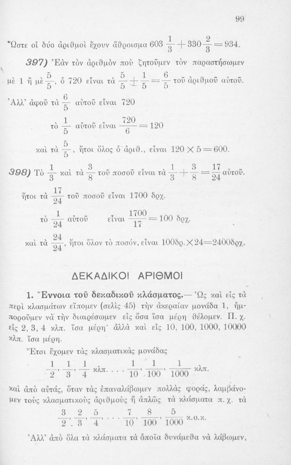 Μάθημα: Μαθηματικά Γλώσσα: Καθαρεύουσα Παρουσίαση περιεχομένου: Μαθητικό βοήθημα Μαθηματικών που περιέχει τις λύσεις ασκήσεων και προβλημάτων αριθμητικής που περιλαμβάνονται στο εγκεκριμένο σχολικό εγχειρίδιο του ΟΕΣΒ. |
