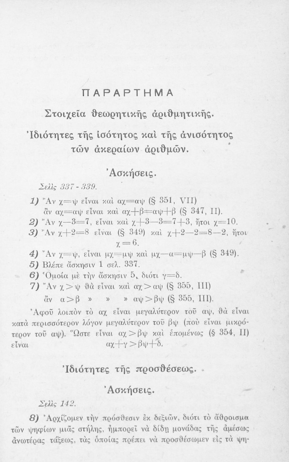 Μαθητικό βοήθημα Μαθηματικών για τους μαθητές των Ελληνικών Σχολείων και των Αστικών Σχολών που περιέχει τις λύσεις ασκήσεων αριθμητικής και γεωμετρίας που περιλαμβάνονται στα βιβλία του Ιωάννη Ν. Χατζηδάκη ...