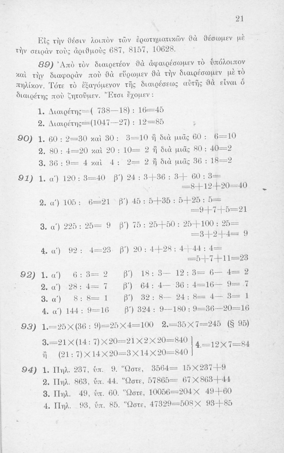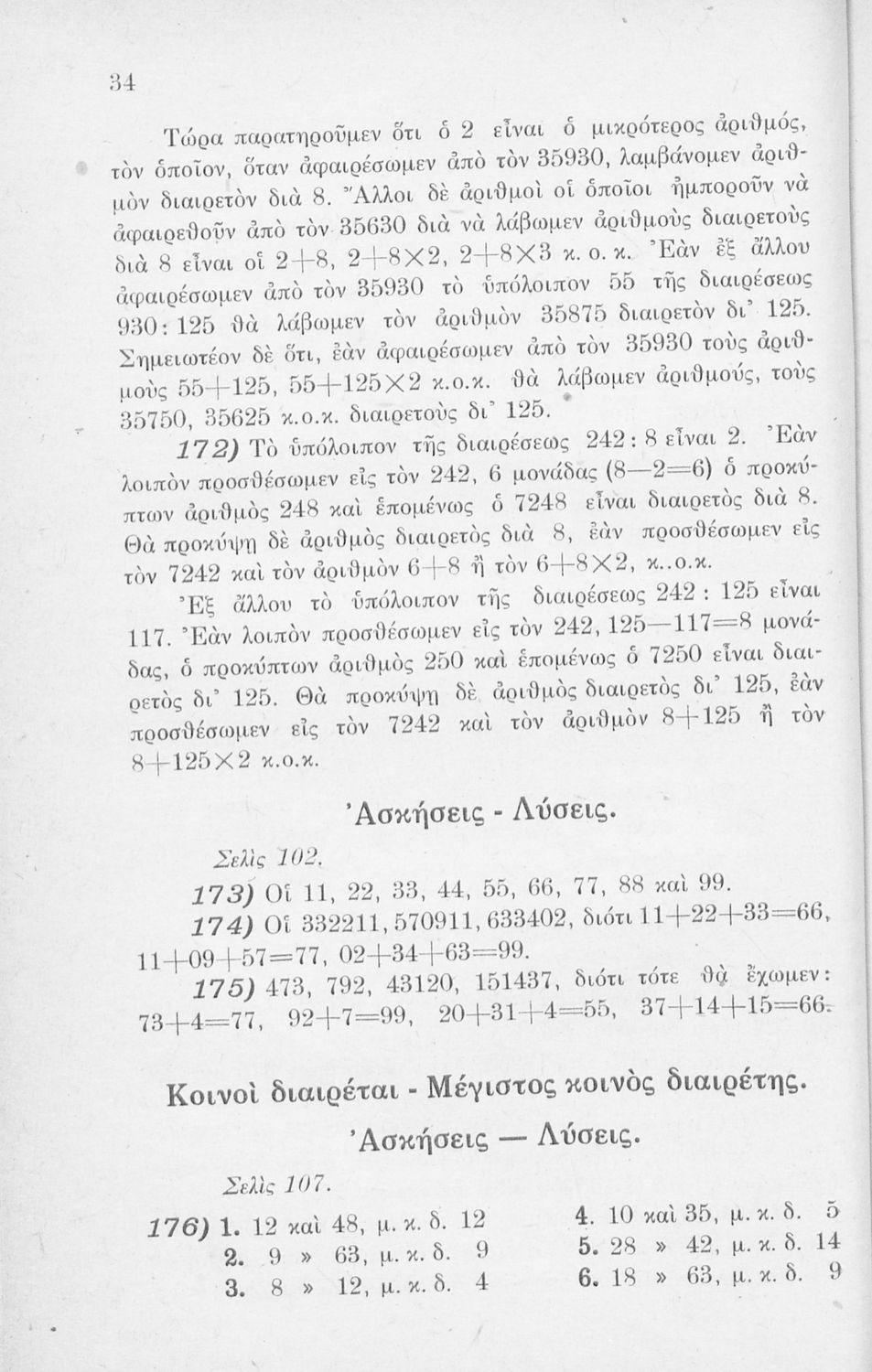 Μαθητικό βοήθημα Μαθηματικών για τους μαθητές των Ελληνικών Σχολείων και των Αστικών Σχολών που περιέχει τις λύσεις ασκήσεων αριθμητικής και γεωμετρίας που περιλαμβάνονται στα βιβλία του Ιωάννη Ν. Χατζηδάκη ...
