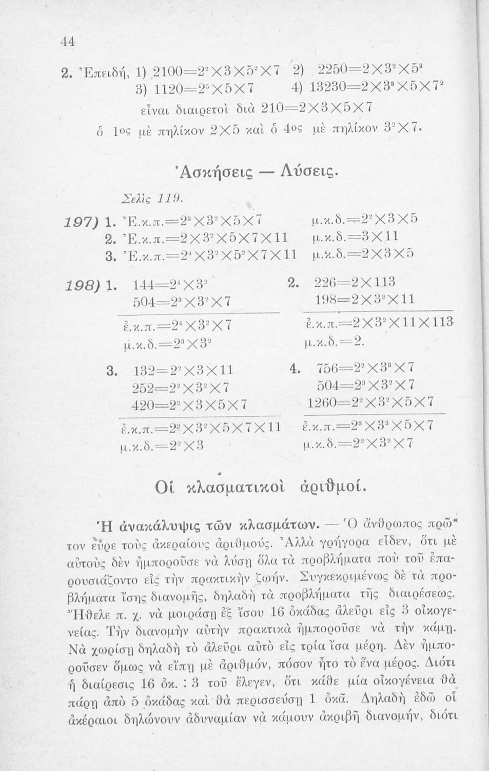 Μαθητικό βοήθημα Μαθηματικών για τους μαθητές των Ελληνικών Σχολείων και των Αστικών Σχολών που περιέχει τις λύσεις ασκήσεων αριθμητικής και γεωμετρίας που περιλαμβάνονται στα βιβλία του Ιωάννη Ν. Χατζηδάκη ...