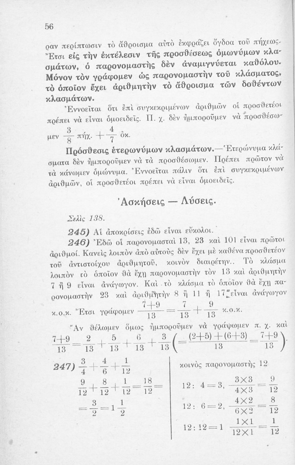 Μάθημα: Μαθηματικά Γλώσσα: Καθαρεύουσα Παρουσίαση περιεχομένου: Μαθητικό βοήθημα Μαθηματικών που περιέχει τις λύσεις ασκήσεων και προβλημάτων αριθμητικής που περιλαμβάνονται στο εγκεκριμένο σχολικό εγχειρίδιο του ΟΕΣΒ. |