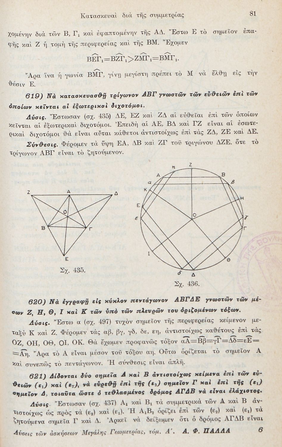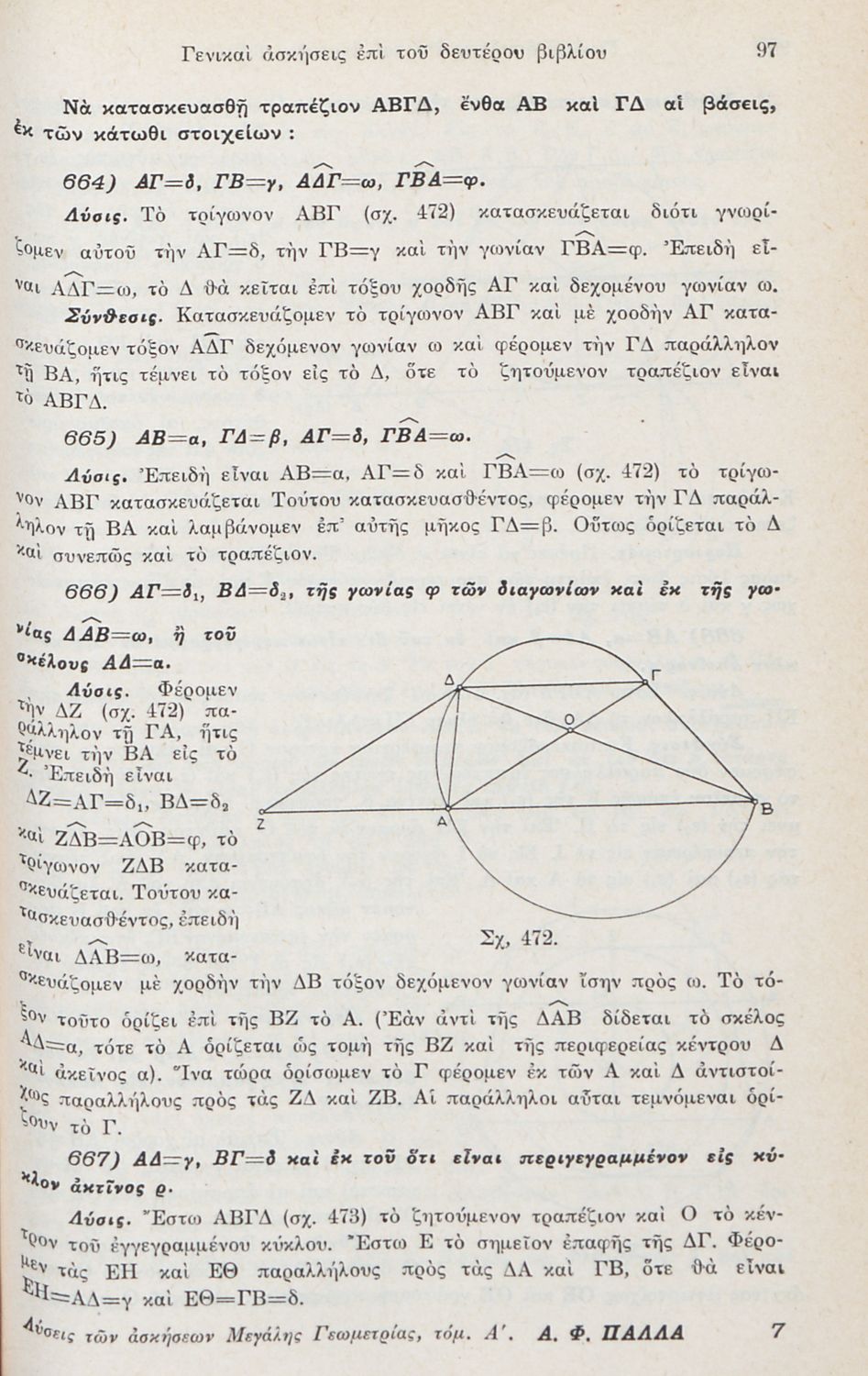 Λύσεις των Ασκήσεων των περιεχομένων στο βιβλίο του ιδίου “Μεγάλη Γεωμετρία- Επιπεδομετρία”