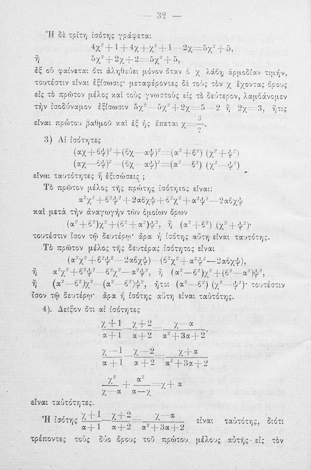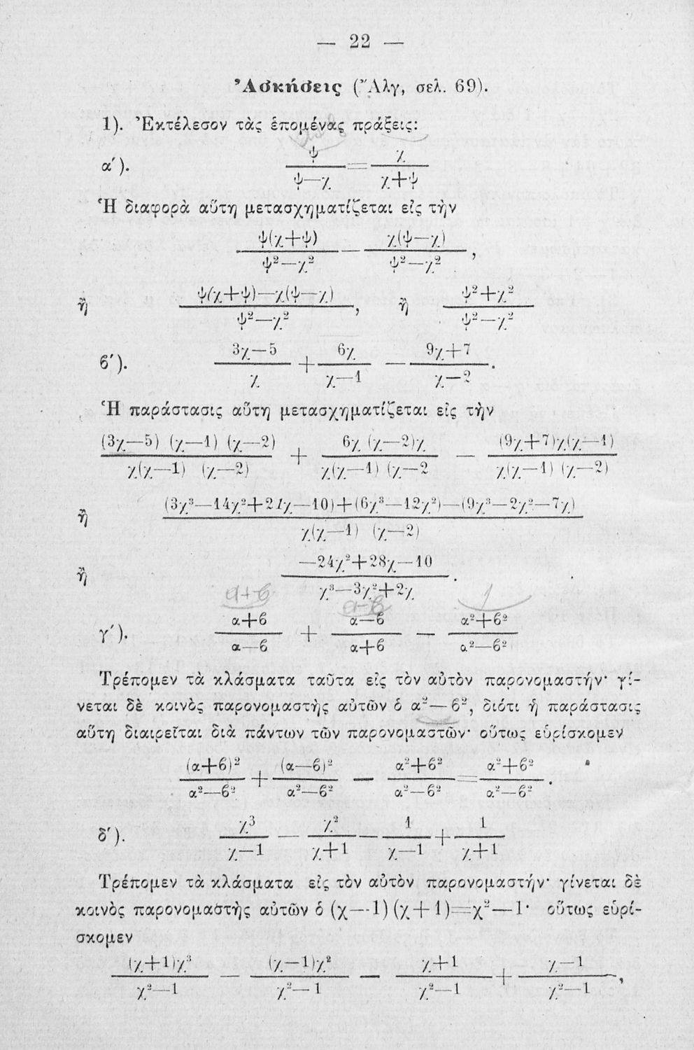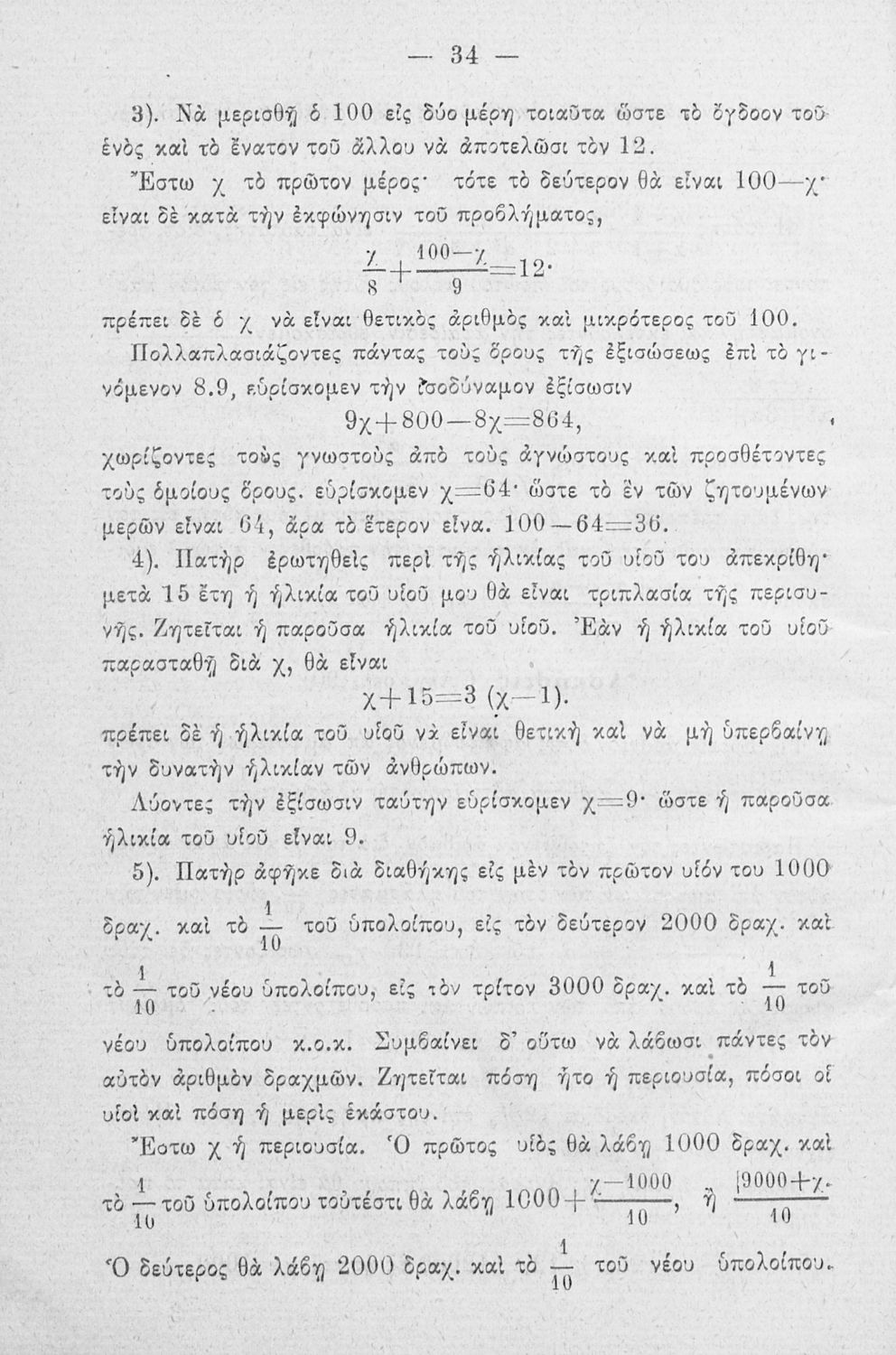 Αποδείξεις και λύσεις απάντων των άλυτων ασκήσεων της άλγεβρας του κράτους (Ν. Λέκου) : προς χρήσιν των μαθητών των Γυμνασίων, των υποψηφίων δια τας Στρατιωτικάς σχολάς και το Πολυτεχνείο