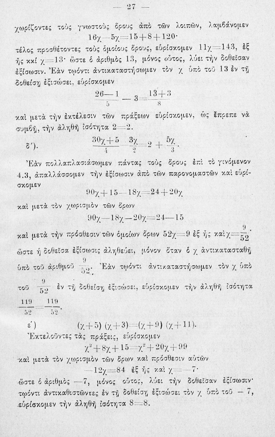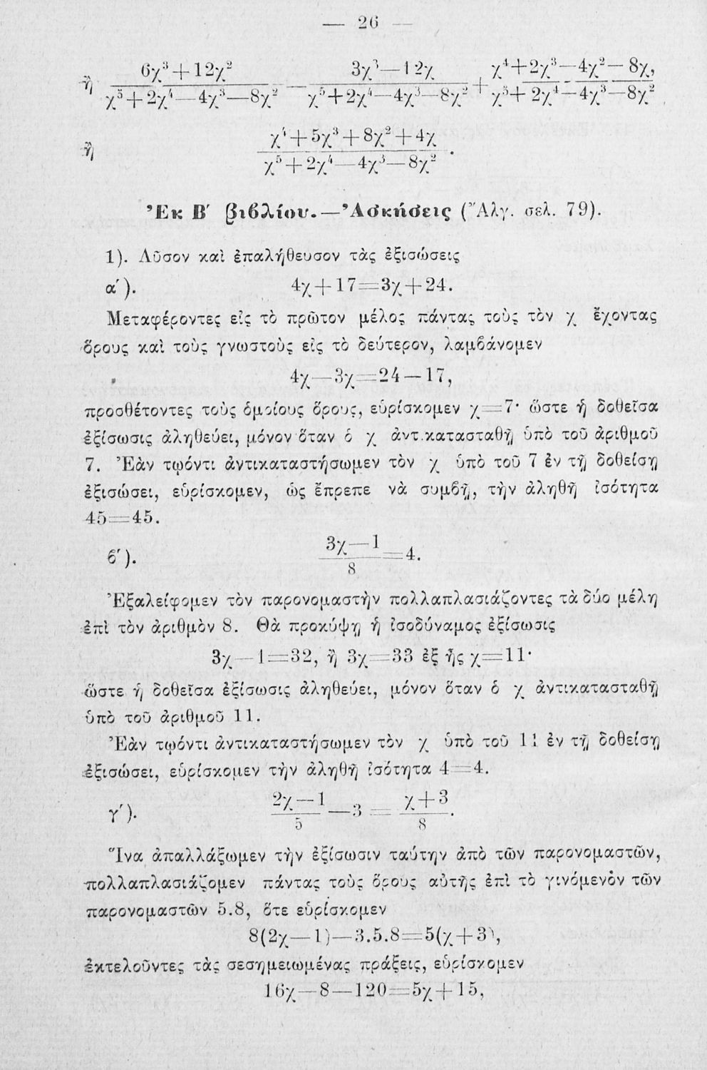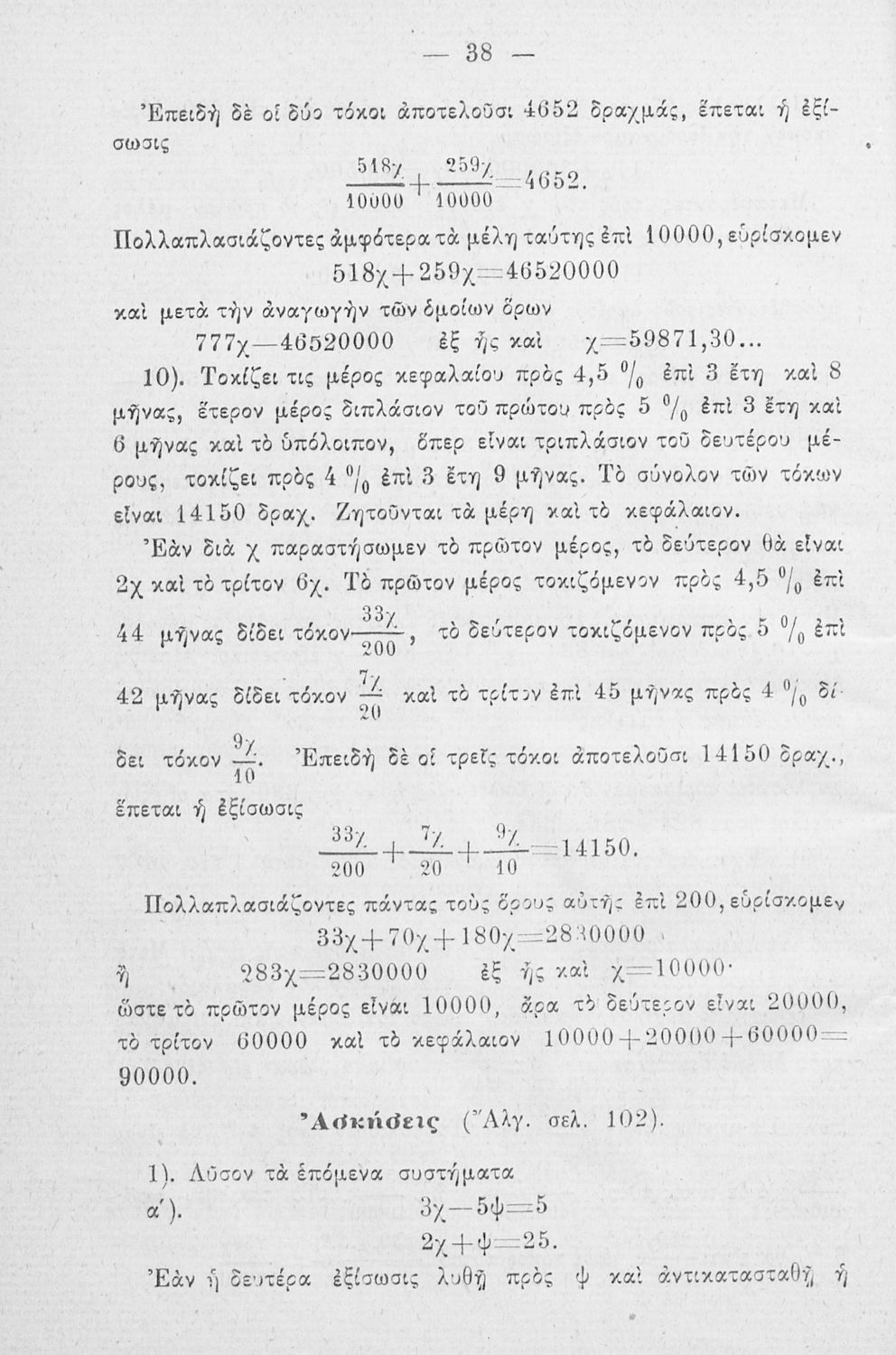 Αποδείξεις και λύσεις απάντων των άλυτων ασκήσεων της άλγεβρας του κράτους (Ν. Λέκου) : προς χρήσιν των μαθητών των Γυμνασίων, των υποψηφίων δια τας Στρατιωτικάς σχολάς και το Πολυτεχνείο