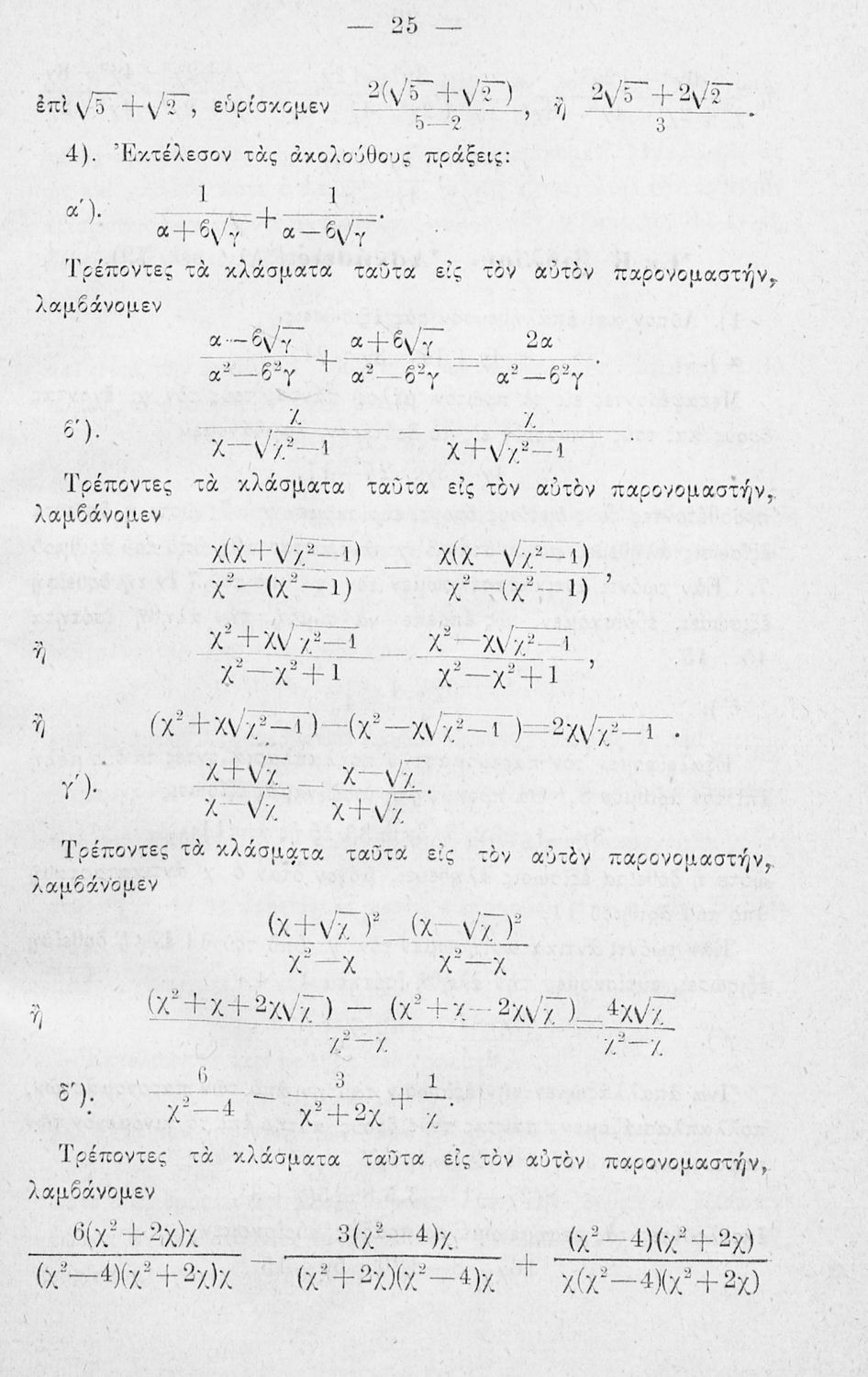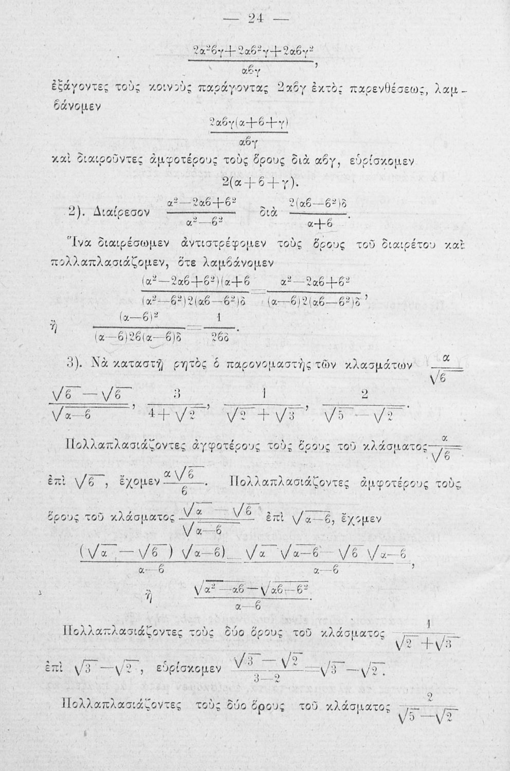 Μαθητικό βοήθημα Άλγεβρας για τους μαθητές των πρακτικών Λυκείων και τους υποψήφιους σχολών του Κράτους. Το βιβλίο περιέχει τις βασικές αλγεβρικές πράξεις, εξισώσεις πρώτου βαθμού, δεύτερου βαθμού και γραφικές