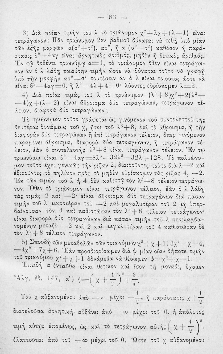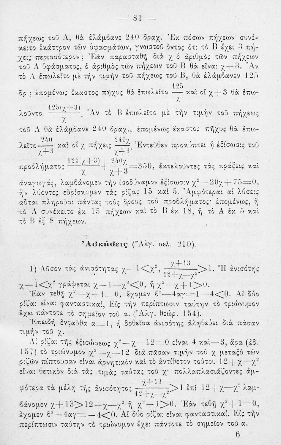 Αποδείξεις και λύσεις απάντων των άλυτων ασκήσεων της άλγεβρας του κράτους (Ν. Λέκου) : προς χρήσιν των μαθητών των Γυμνασίων, των υποψηφίων δια τας Στρατιωτικάς σχολάς και το Πολυτεχνείο