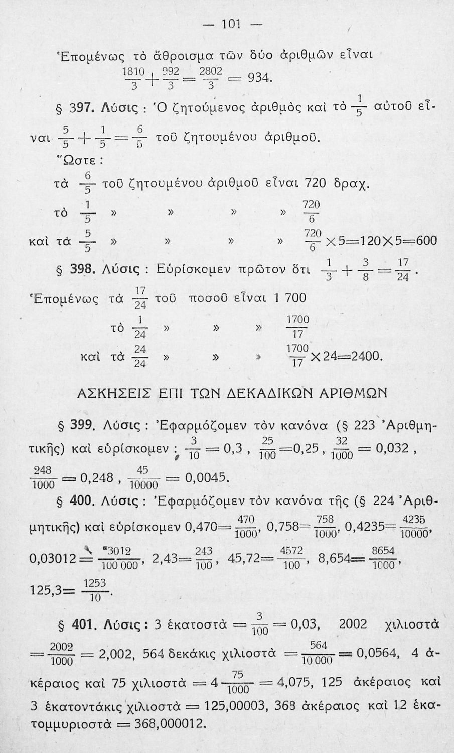 Παιδαγωγικό βοήθημα για τη διδασκαλία της Αριθμητικής στους μαθητές της Ε΄ και ΣΤ΄ Δημοτικού που περιέχει, μεταξύ άλλων, οδηγίες και λύσεις των ασκήσεων.