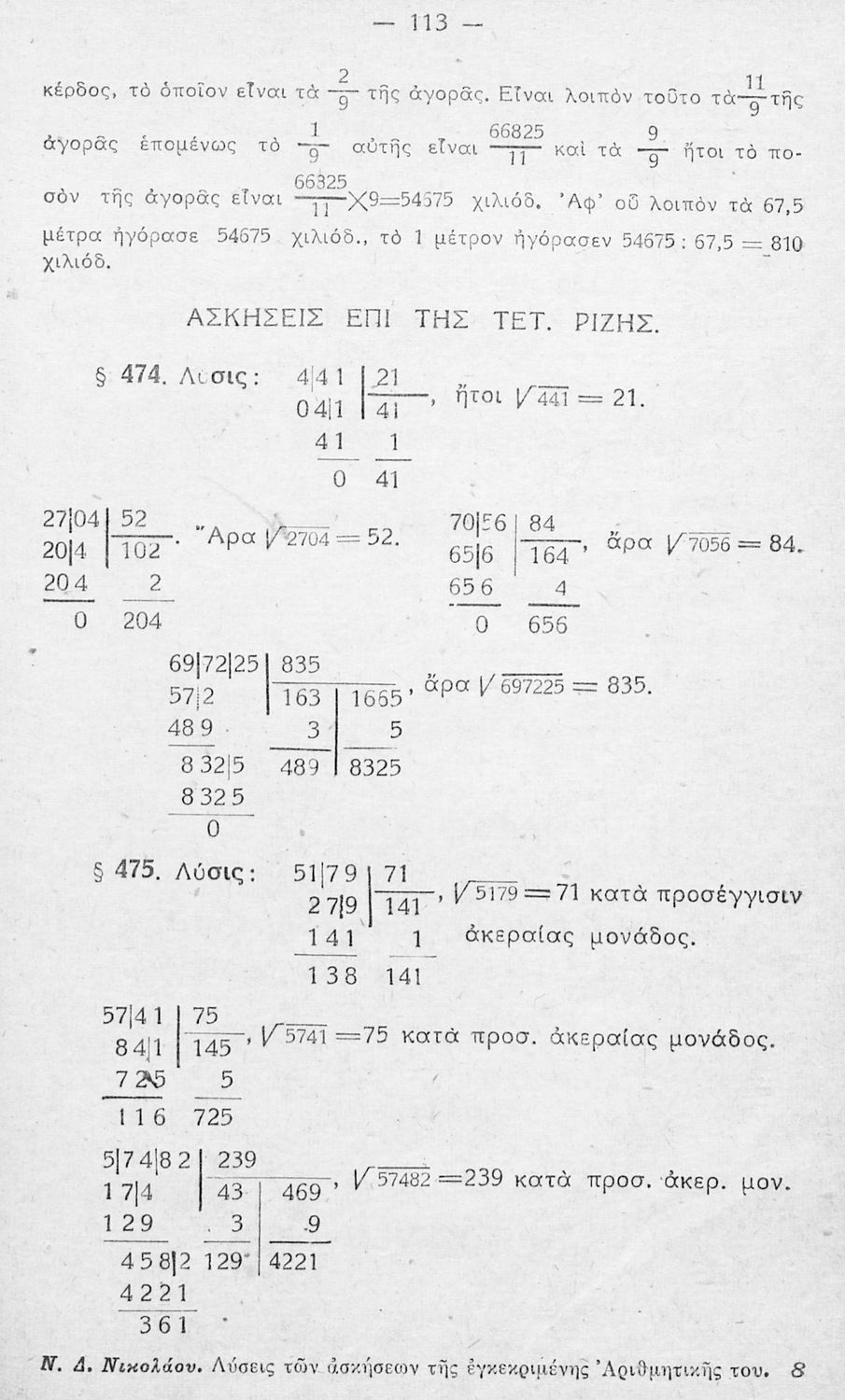 Τίτλος: Λύσεις των Ασκήσεων της εγκεκριμένης Αριθμητικής των Νικ. Δ. Νικολάου, Πασσά και Τόγκα και της εγκεκριμένης Πρακτικής Γεωμετρίας του Νικόλαου Νικολάου