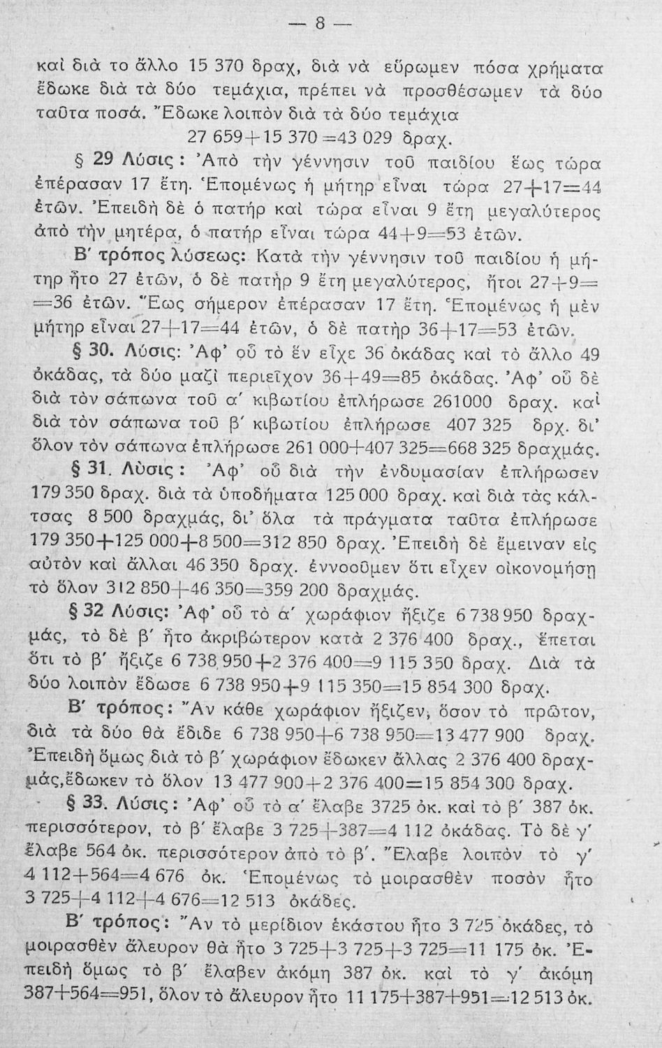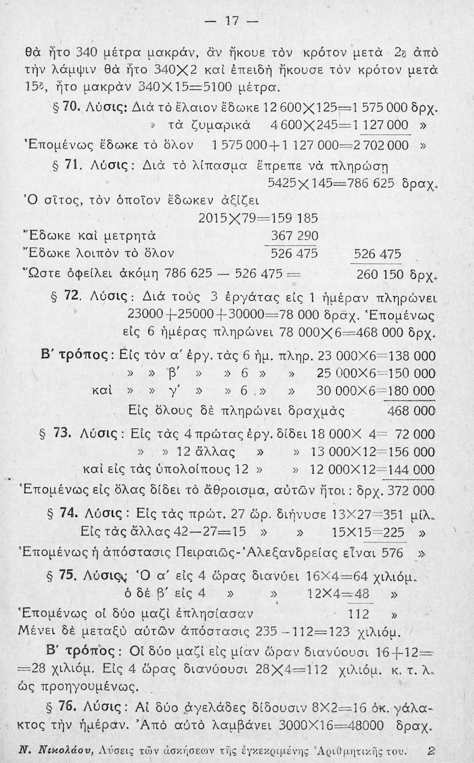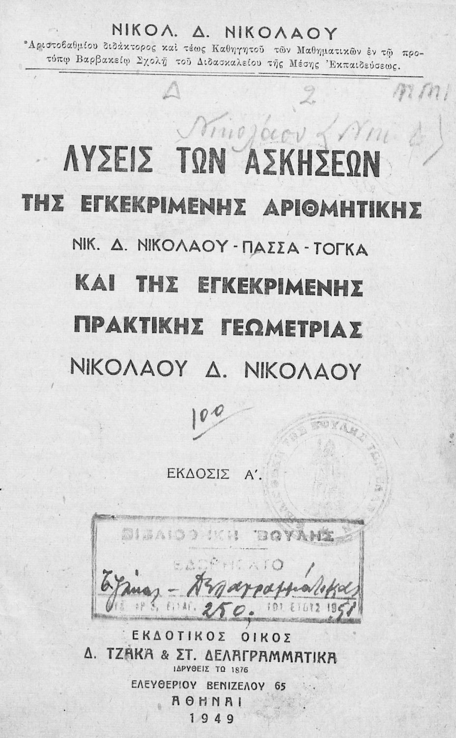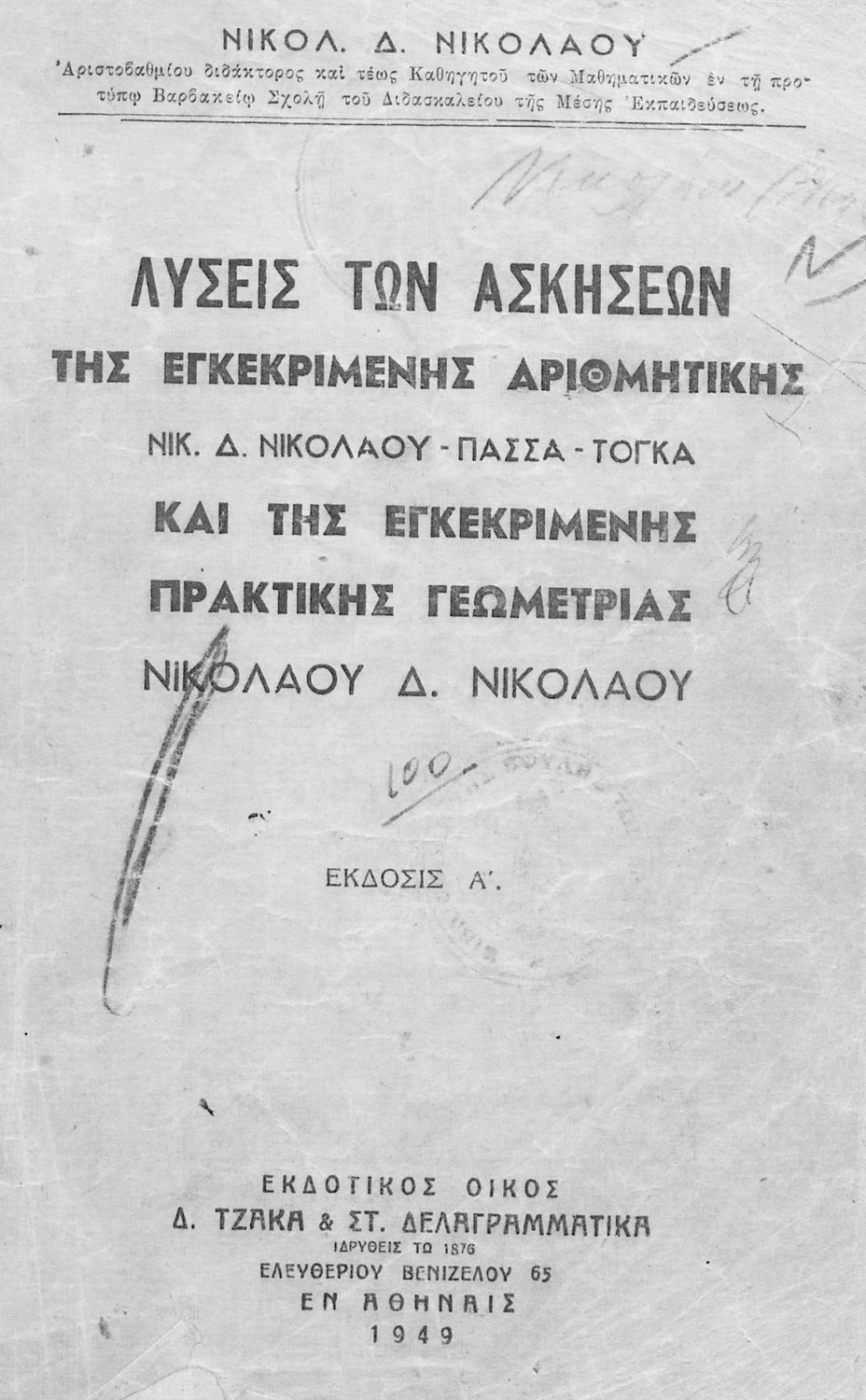Τίτλος: Λύσεις των Ασκήσεων της εγκεκριμένης Αριθμητικής των Νικ. Δ. Νικολάου, Πασσά και Τόγκα και της εγκεκριμένης Πρακτικής Γεωμετρίας του Νικόλαου Νικολάου