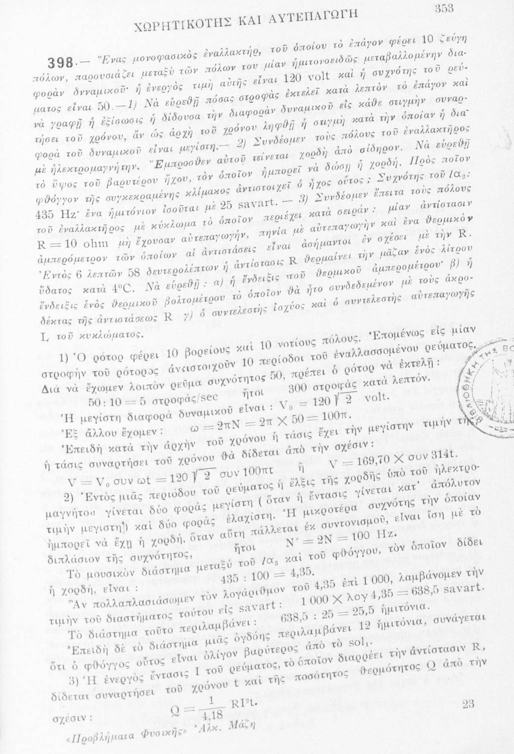 Κωδικός αναγνώρισης: 03-20638010 Τίτλος: Προβλήματα Φυσικής δια τους μαθητάς των σχολείων Μέσης Εκπαιδεύσεως και τους υποψηφίους σπουδαστάς των ανωτάτων σχολών Συγγραφέας: Αλκίνοος Ε. Μάζης Μέγεθος και υπόστρωμα: Μαθητικό βοήθημα, σκληρό εξώφυλλο, 392 σελίδες. |
