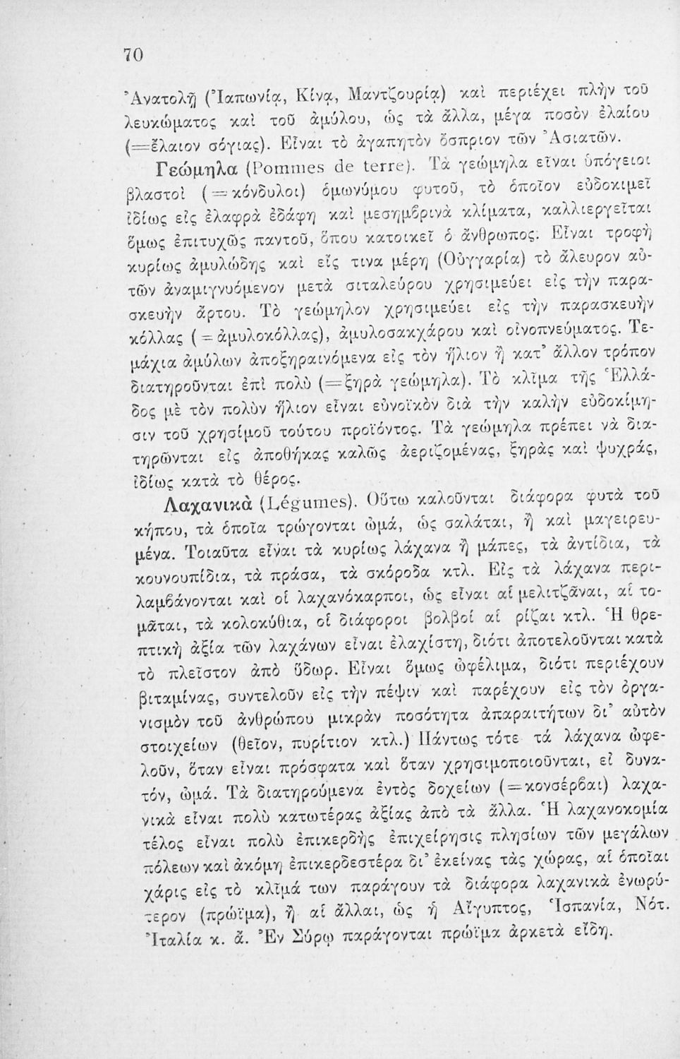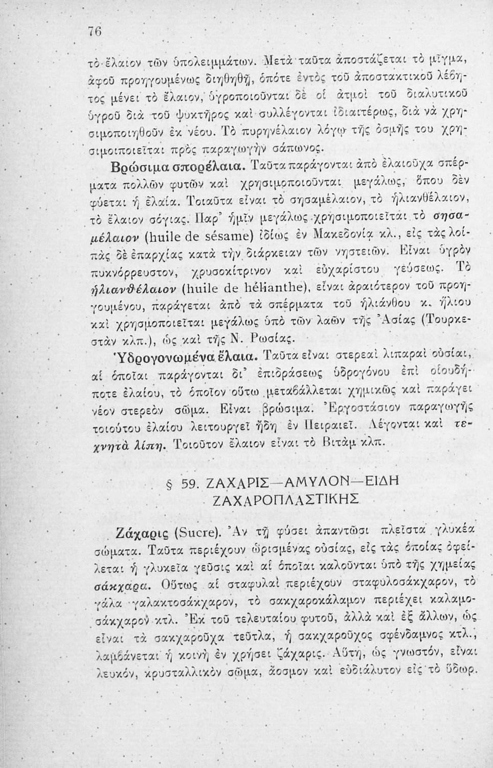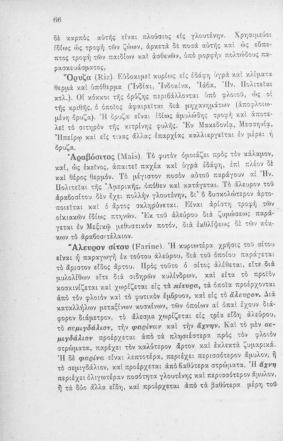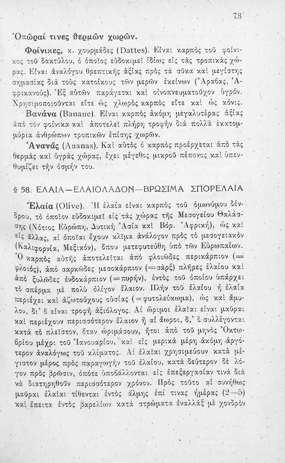 Παρουσίαση περιεχομένου: Το βιβλίο παρουσιάζει φυτικά και ζωικά προϊόντα και τα κατηγοριοποιεί σε σιτηρά, αποικιακά, υφαντικά, φαρμακευτικά, έλαια. Τα ζωικά σε τρόφιμα, δέρματα, υφαντικά. Αναφέρεται στους τόπους παραγωγής και πληροφορίες για το κάθε προϊόν