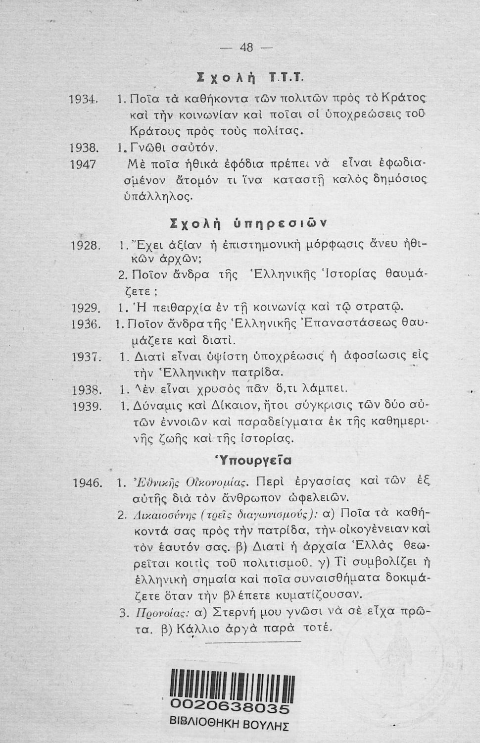 Τίτλος: Θέματα Εκθέσεων δι' υποψηφίους Πανεπιστημίου, Στρατιωτικών Σχολών, Ευελπίδων, Ικάρων, Δοκίμων, Αστυνομίας Πόλεων, Χωροφυλακής, Πολυτεχνείου, Ανωτάτης Εμπορικής, Παιδαγωγικής Ακαδημίας και μαθητάς Γυμνασίου