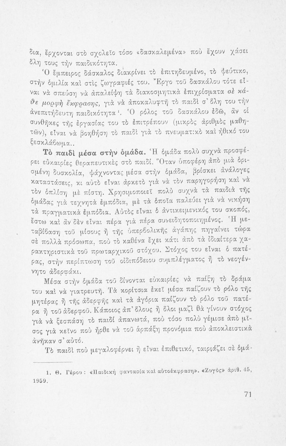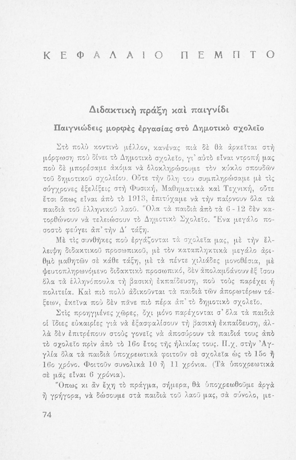 Παιδαγωγικό βοήθημα που αναλύει τη σημασία του παιχνιδιού στην παιδαγωγική και διδακτική διαδικασία στα παιδιά του Δημοτικού. Φέρει ιδιόχειρη αφιέρωση.