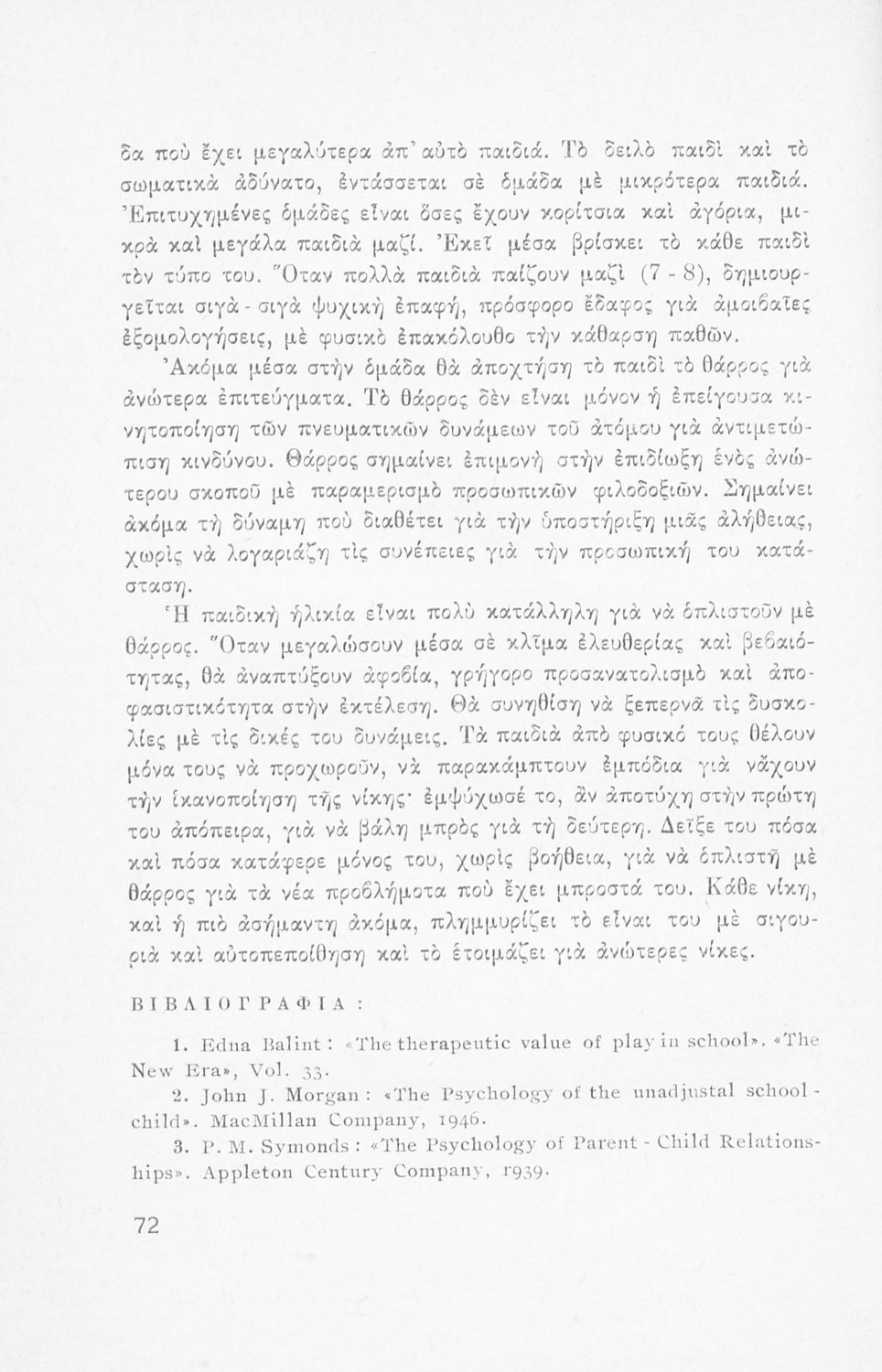 Εκπαιδευτικό βοήθημα του Δημοτικού. Στο βιβλίο αναφέρεται στο ρόλο του παιχνιδιού ως εργαλείο αποτελεσματικότερης προσέγγισης και εκμάθησης των παιδιών.