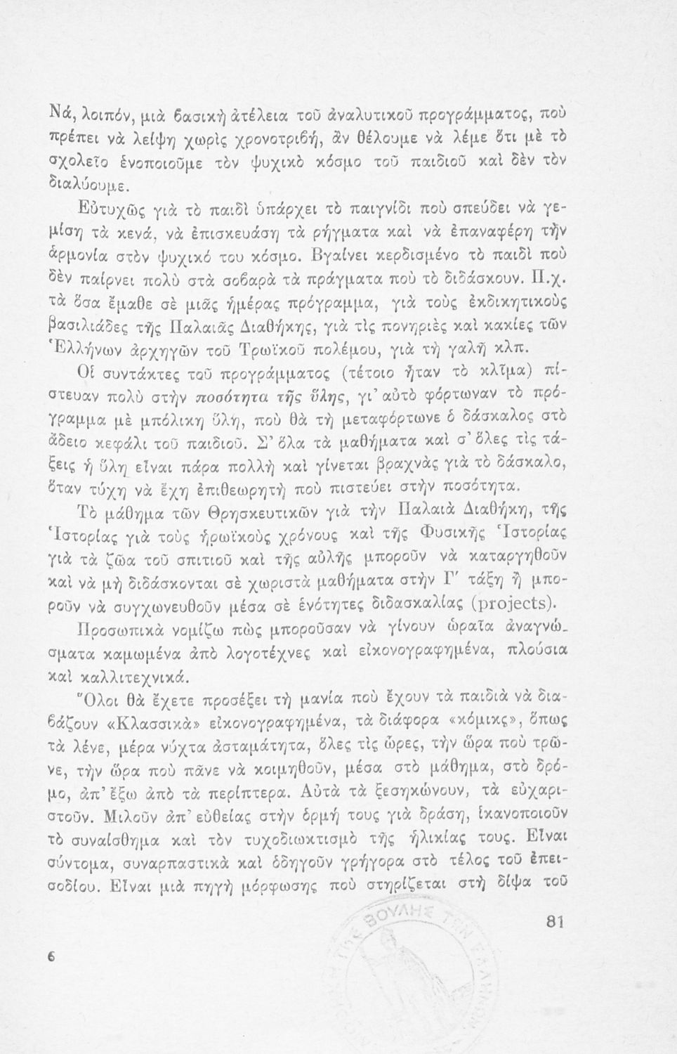 Επιστημονικό δοκίμιο που, υιοθετώντας την οπτική του Σχολείου Εργασίας, επιχειρεί μια κριτική αποτίμηση των παιδαγωγικών και πολιτικών προκείμενων του αναλυτικού προγράμματος.