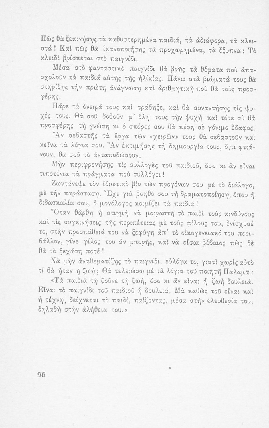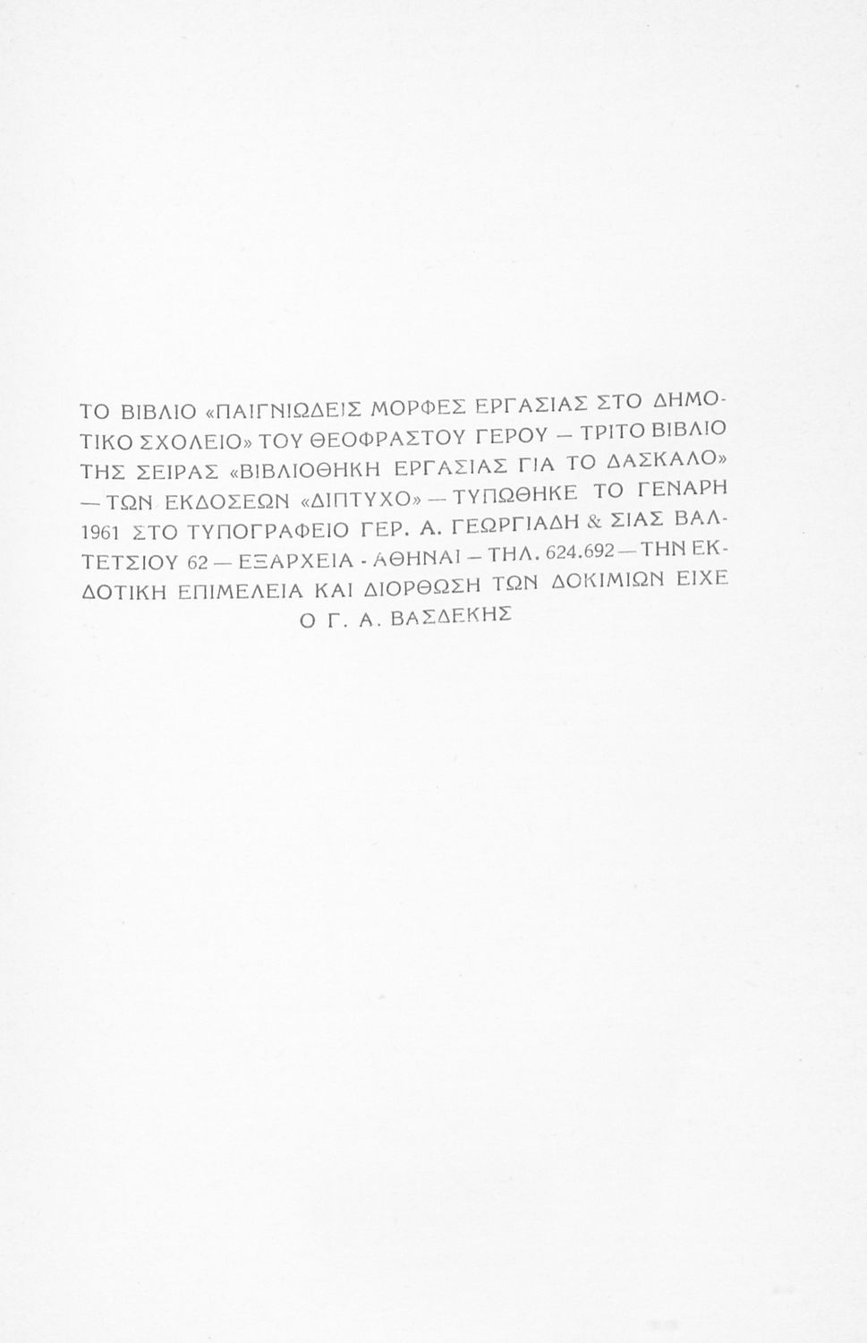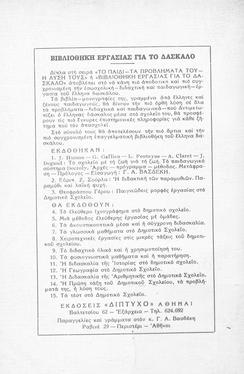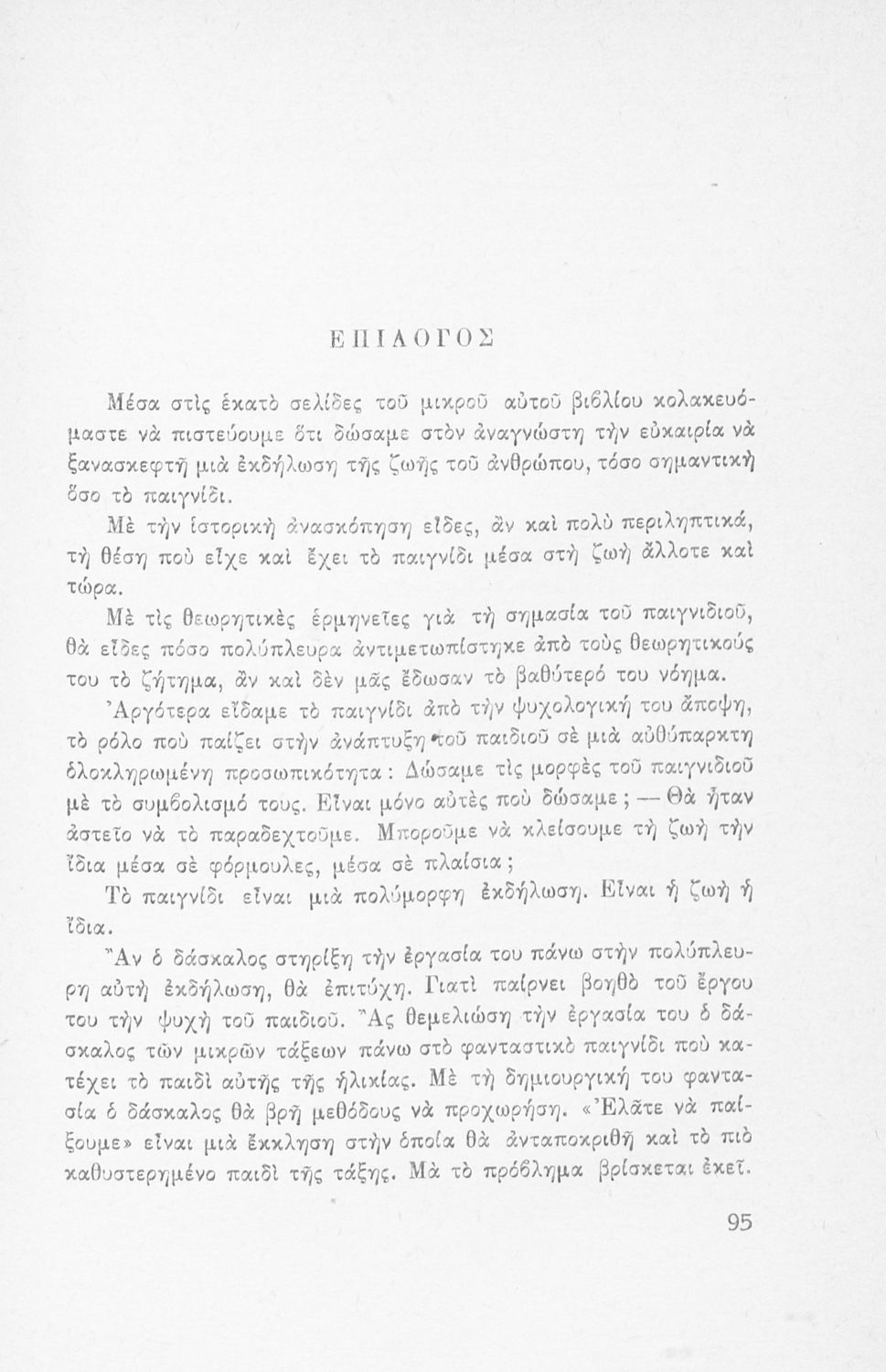 Εκπαιδευτικό βοήθημα του Δημοτικού. Στο βιβλίο αναφέρεται στο ρόλο του παιχνιδιού ως εργαλείο αποτελεσματικότερης προσέγγισης και εκμάθησης των παιδιών.