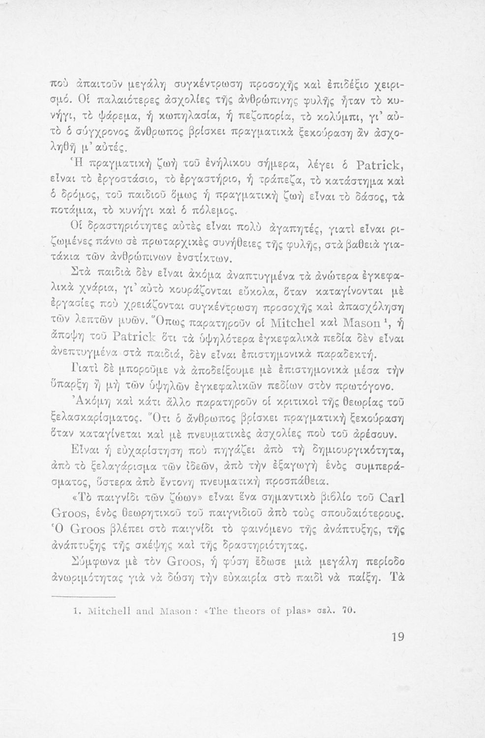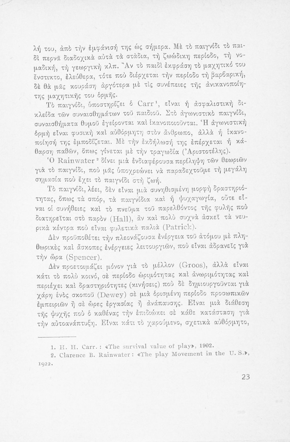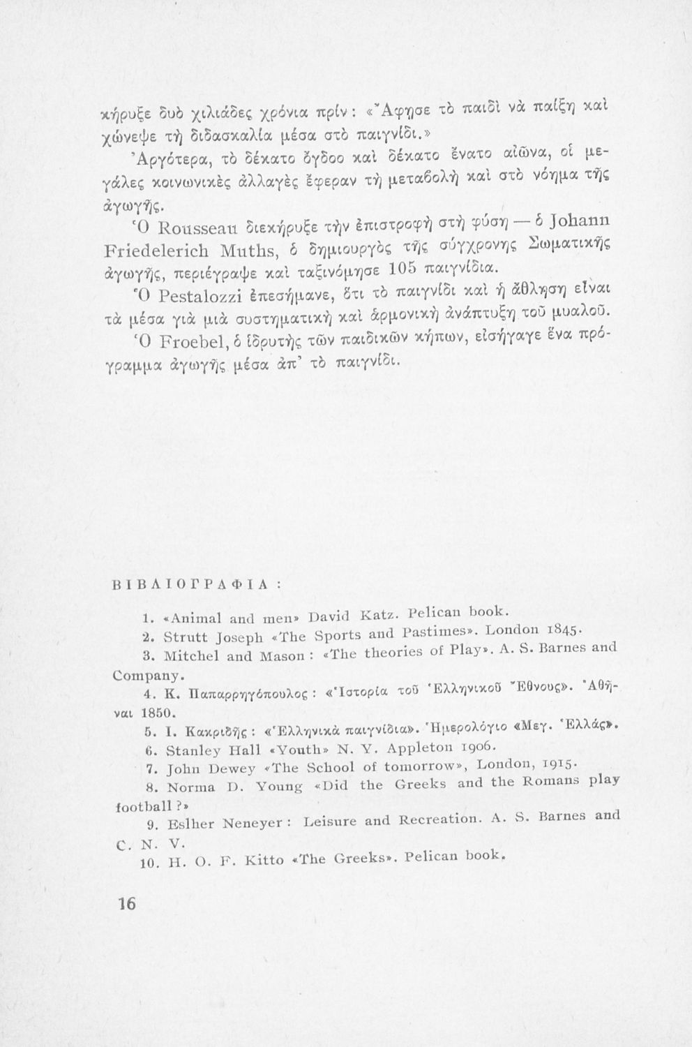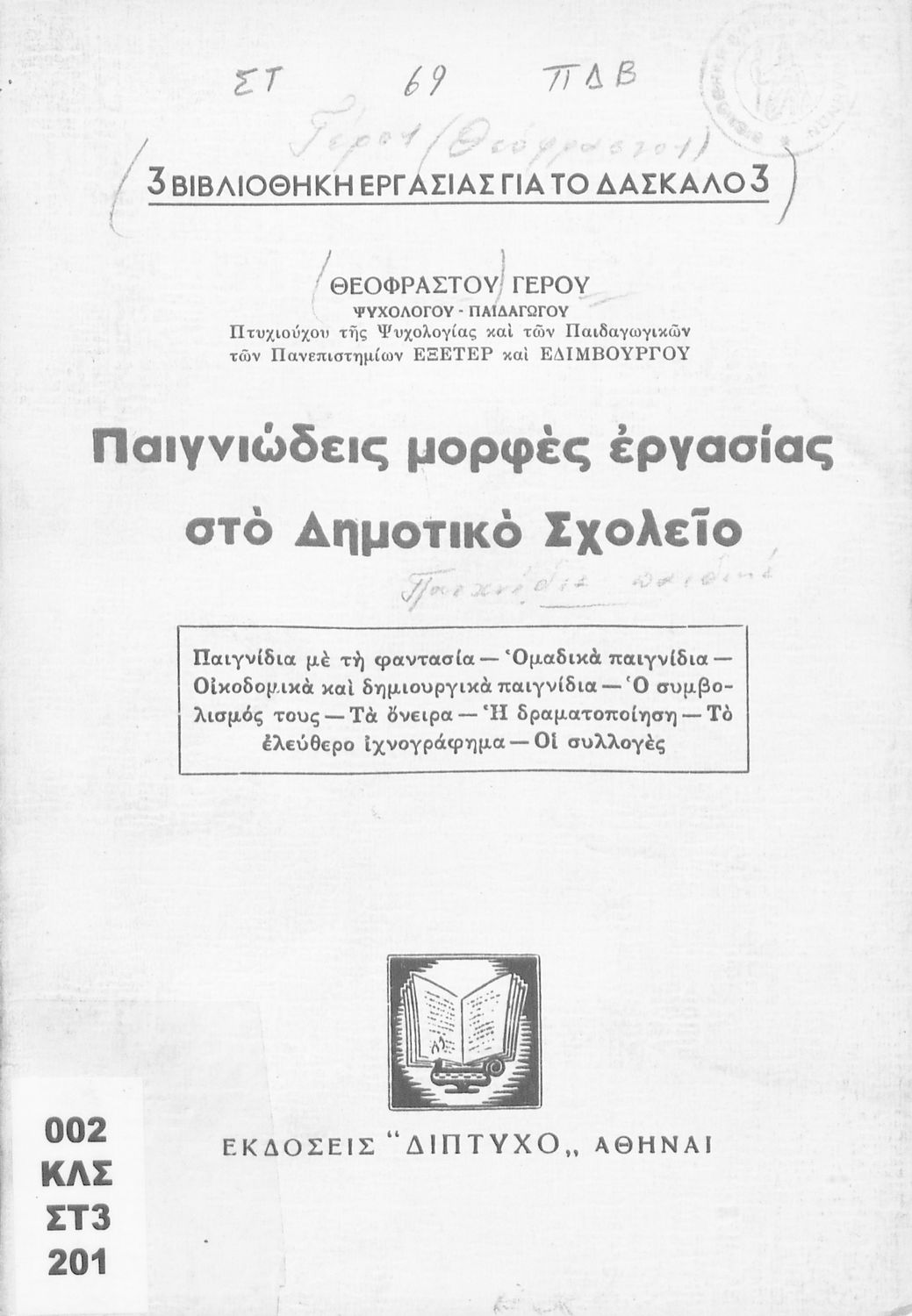 Εκπαιδευτικό βοήθημα του Δημοτικού. Στο βιβλίο αναφέρεται στο ρόλο του παιχνιδιού ως εργαλείο αποτελεσματικότερης προσέγγισης και εκμάθησης των παιδιών.