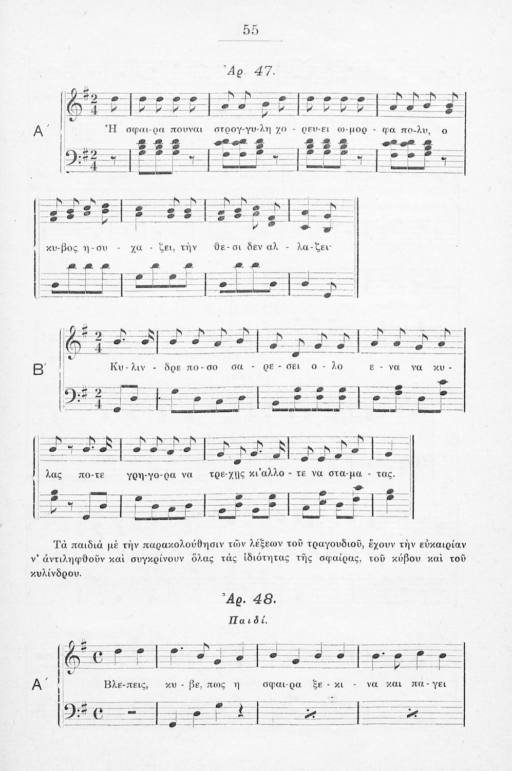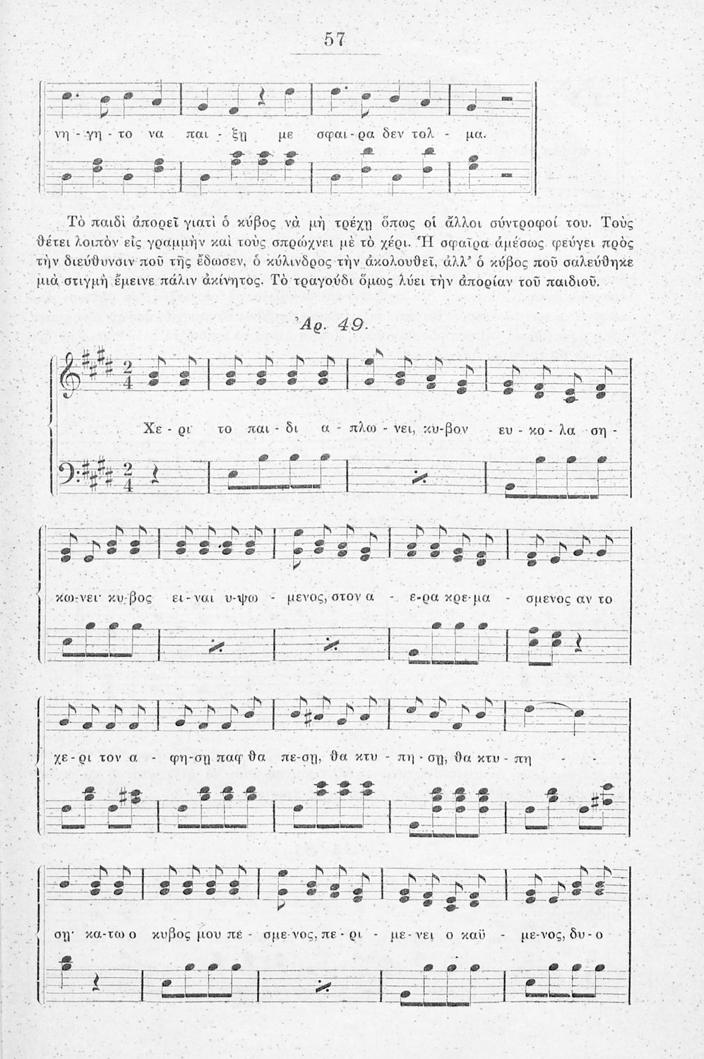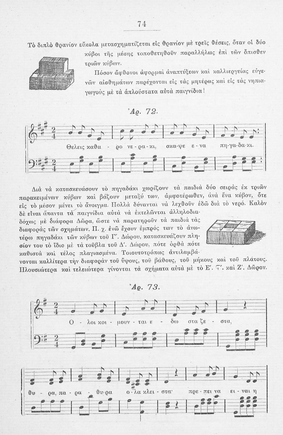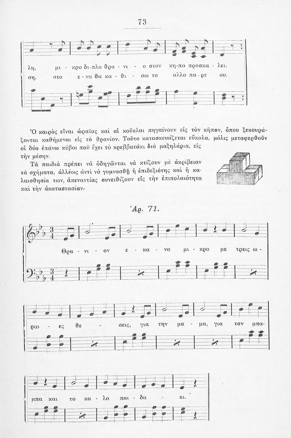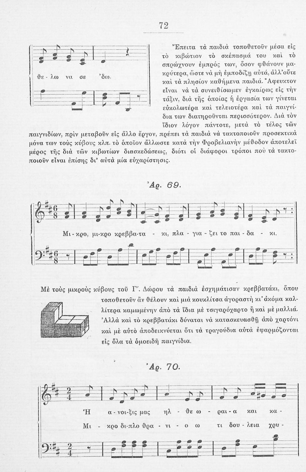 Παιδαγωγικό βοήθημα για τις νηπιαγωγούς και τις μητέρες. Το βιβλίο είναι αφιερωμένο στη μνήμη της Αικατερίνης Λασκαρίδου και αποτελεί οδηγό για τη χρήση της μουσικής και των τραγουδιών ως εκπαιδευτικό εργαλείο