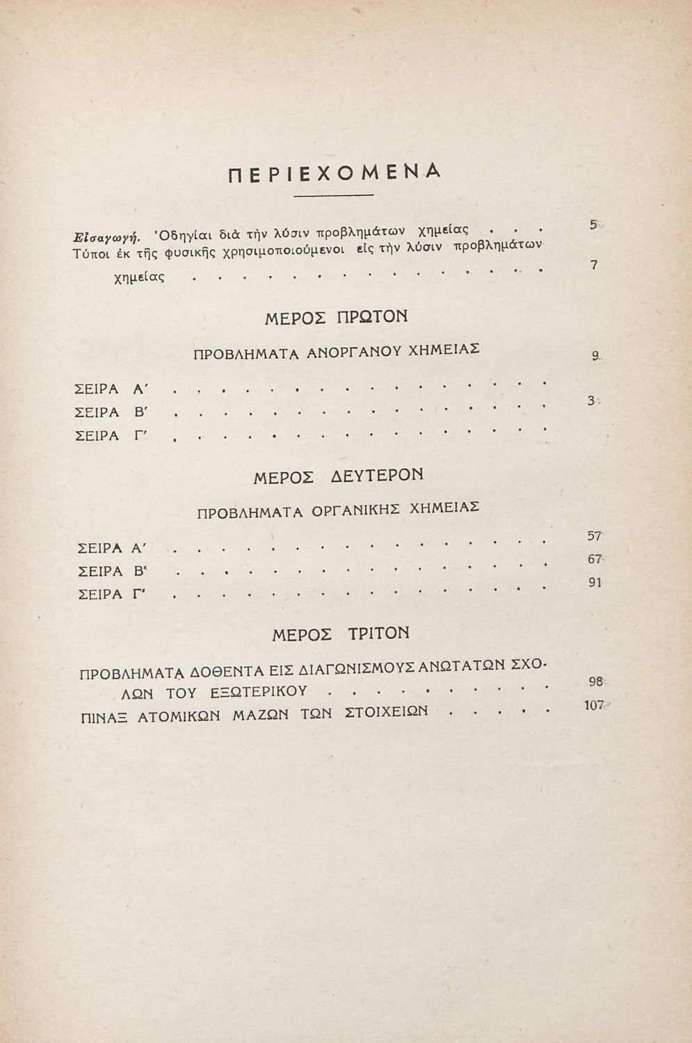 Προβλήματα Ανόργανου και Οργανικής Χημείας προς χρήσιν των υποψηφίων δια τας εισαγωγικάς εξετάσεις των ανωτάτων σχολών και των μαθητών των ανωτάτων τάξεων των σχολείων της Μέσης Εκπαιδεύσεως