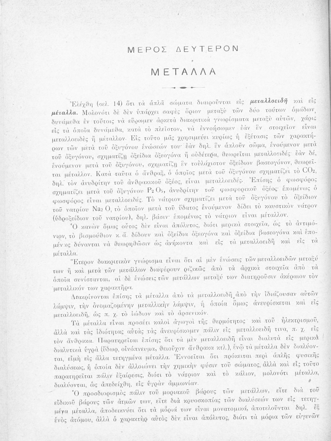 Σχολικό εγχειρίδιο Χημείας που προσδιορίζει τη σύσταση της ύλης (ατομική θεωρία, θεμελιώδεις νόμοι της Χημείας), τις χημικές αντιδράσεις και εξισώσεις καθώς περιγράφονται οι χημικές ενώσεις (οξέα, βάσεις, ...