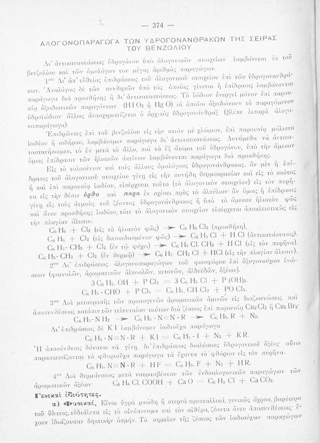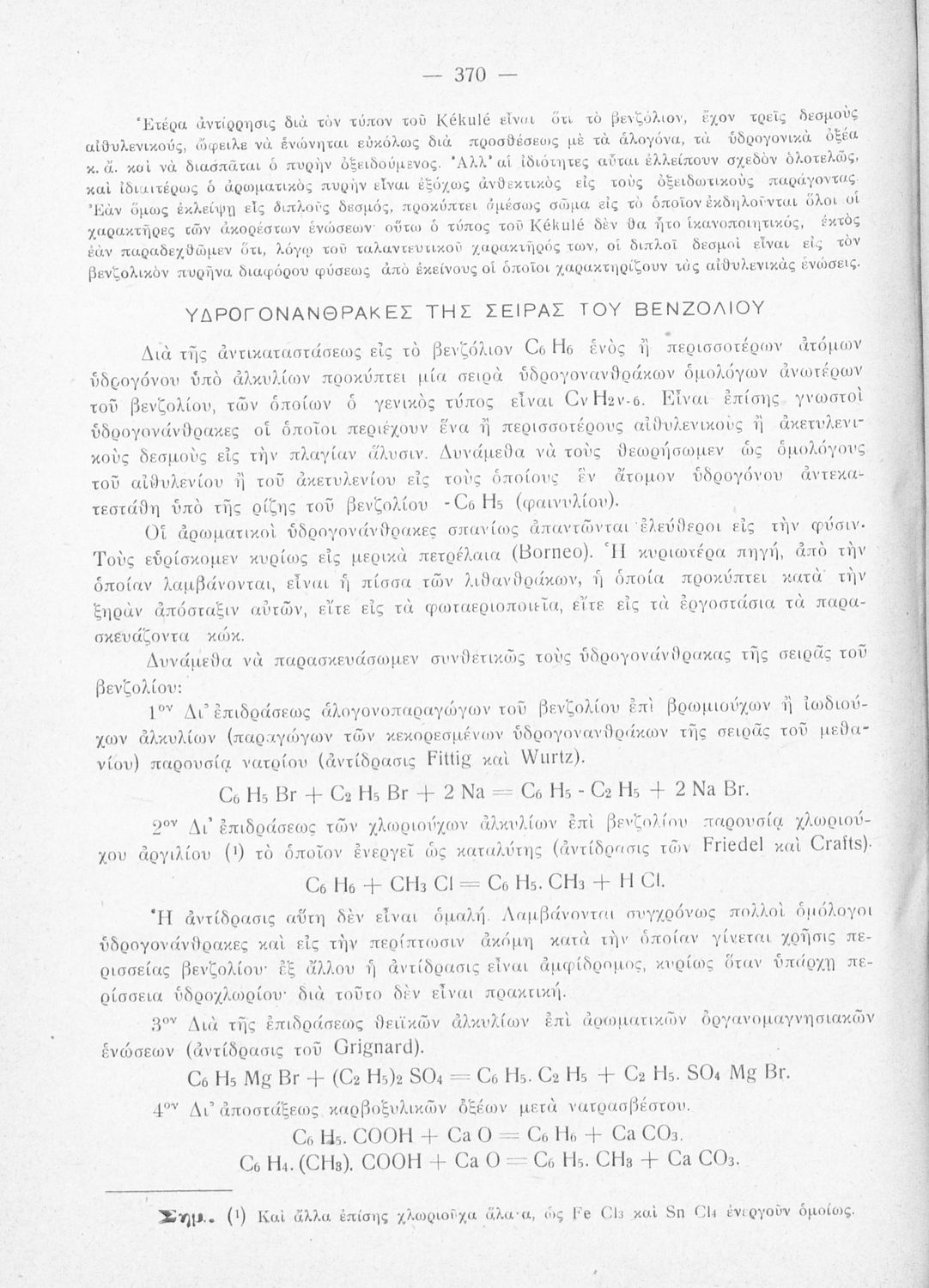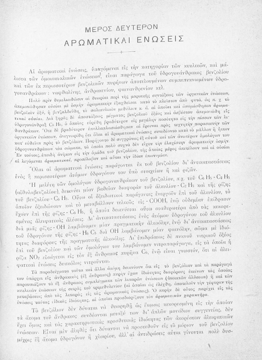 Σχολικό εγχειρίδιο Χημείας που περιγράφει τη σειρά οργανικών και λιπαρών ενώσεων, προσδιορίζονται οικογένειες και ιδιότητες οξέων-βάσεων-αλάτων καθώς γίνεται αναλυτική περιγραφή αρωματικών ενώσεων και των ...