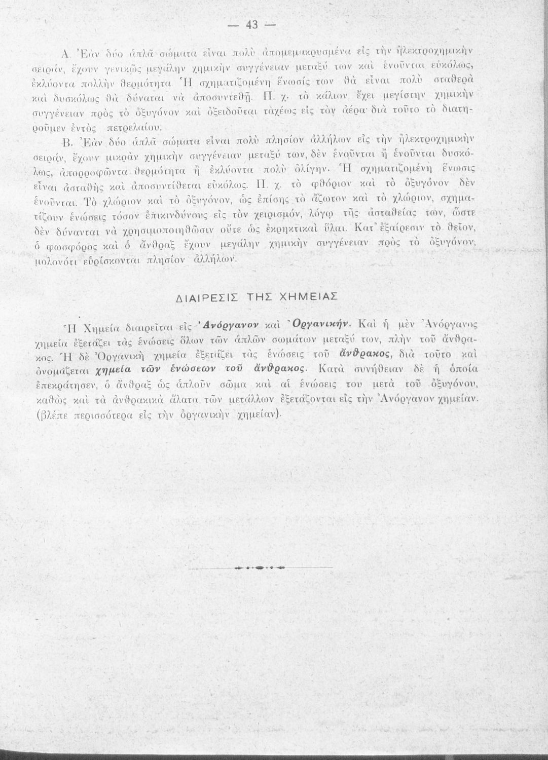Σχολικό εγχειρίδιο Χημείας Α΄ και Β΄ Λυκείου που περιλαμβάνει εισαγωγή στις έννοιες της Χημείας (ύλη, νόμοι χημείας, χημικές αντιδράσεις, εξισώσεις, ενώσεις), αναλυτική περιγραφή στοιχείων και των ενώσεών τους.