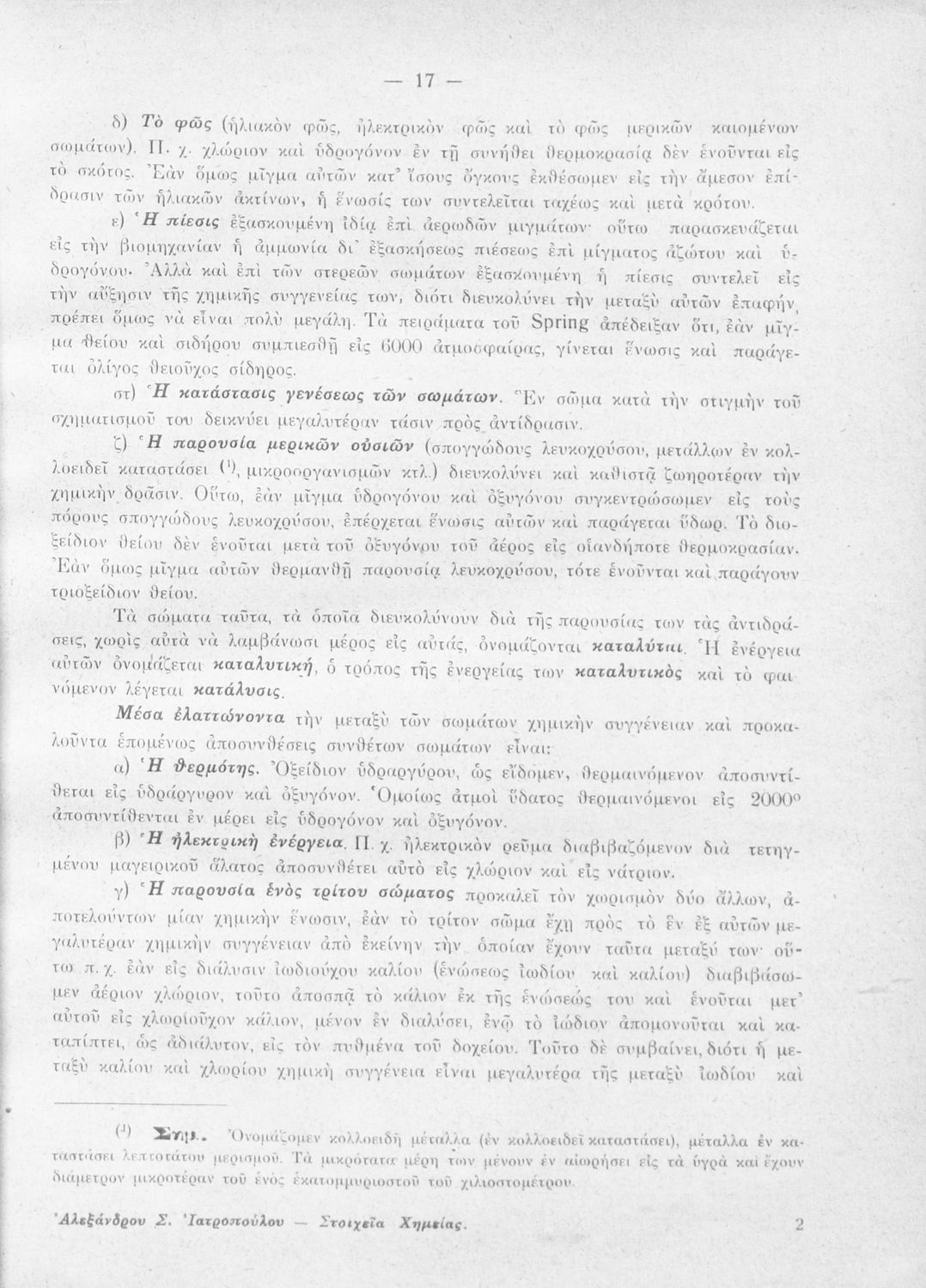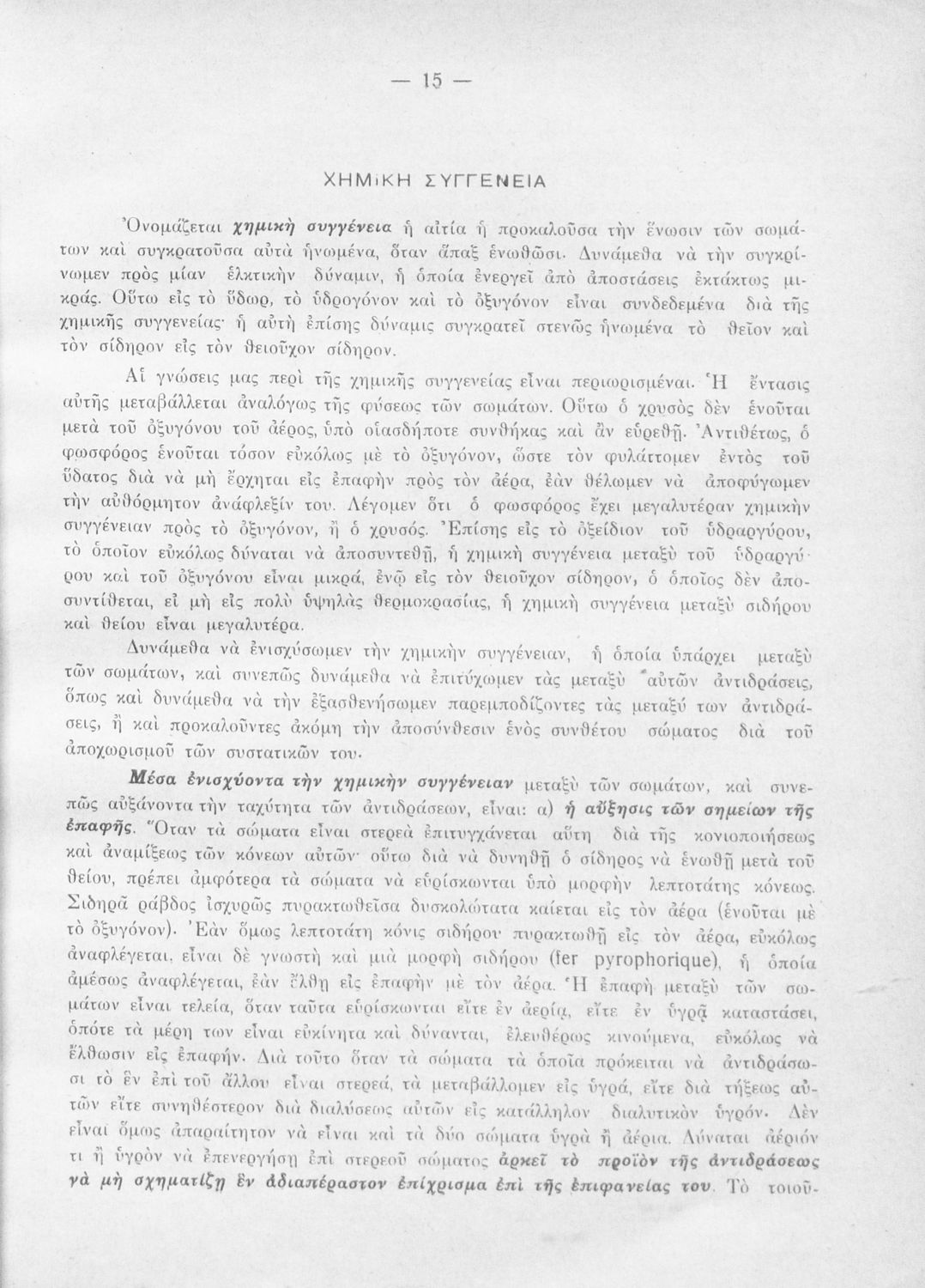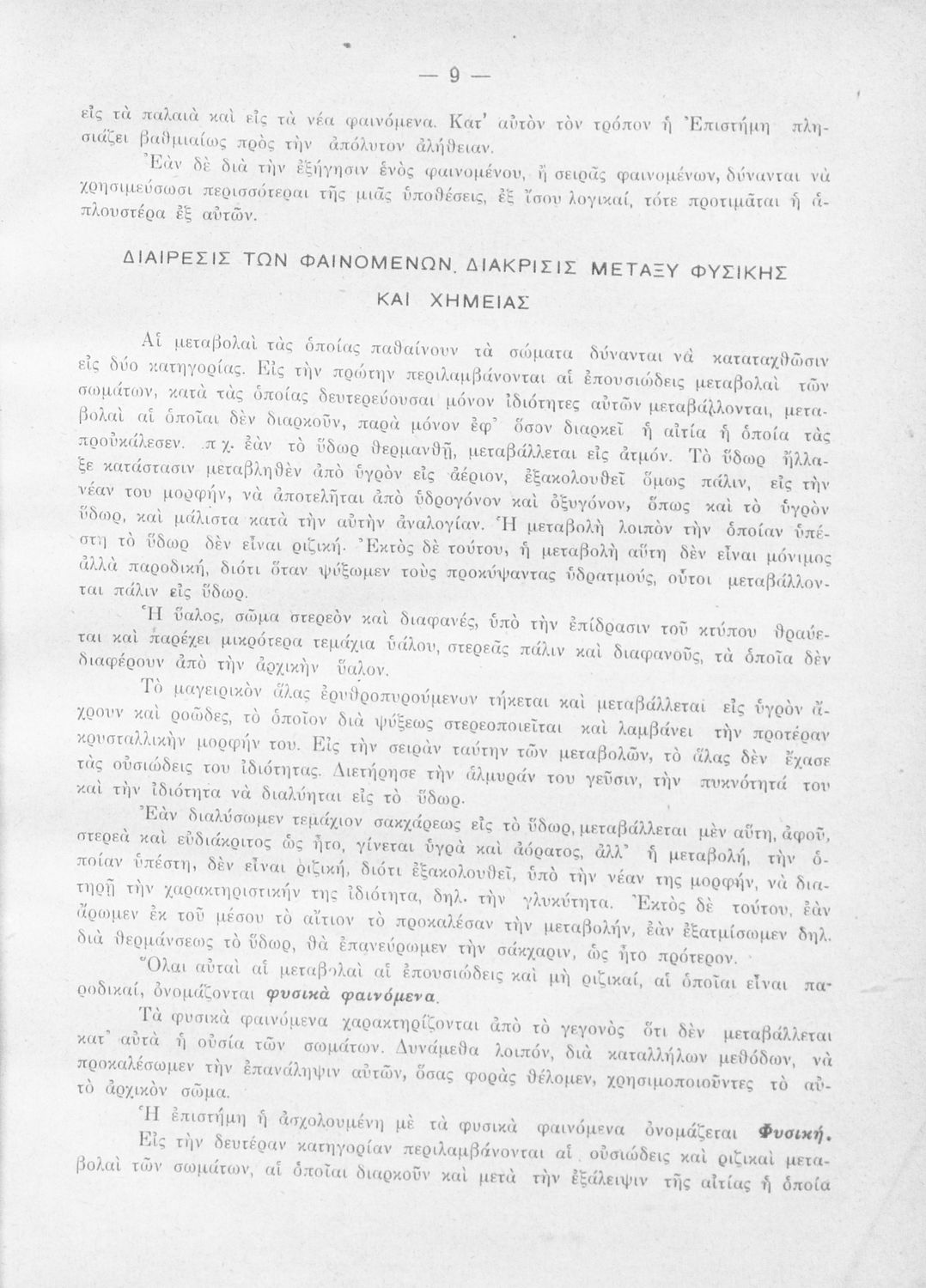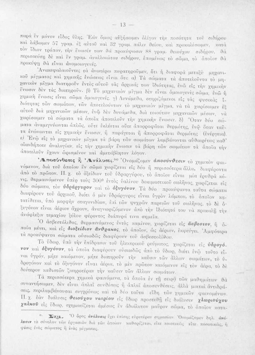 Σχολικό εγχειρίδιο Χημείας που προσδιορίζει τη σύσταση της ύλης (ατομική θεωρία, θεμελιώδεις νόμοι της Χημείας), τις χημικές αντιδράσεις και εξισώσεις καθώς περιγράφονται οι χημικές ενώσεις (οξέα, βάσεις, ...