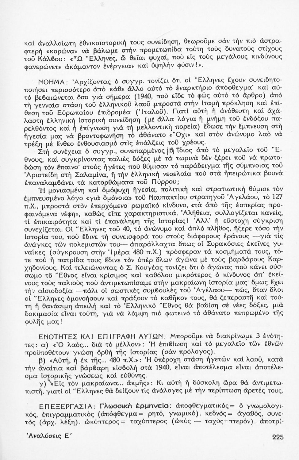 Μαθητικό βοήθημα Νέων Ελληνικών Ε' Γυμνασίου που περιλαμβάνει αναλύσεις των κειμένων του αντίστοιχου σχολικού εγχειριδίου από νοηματική, ερμηνευτική και γλωσσική σκοπιά.