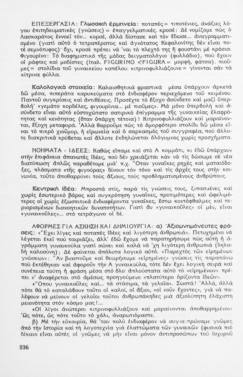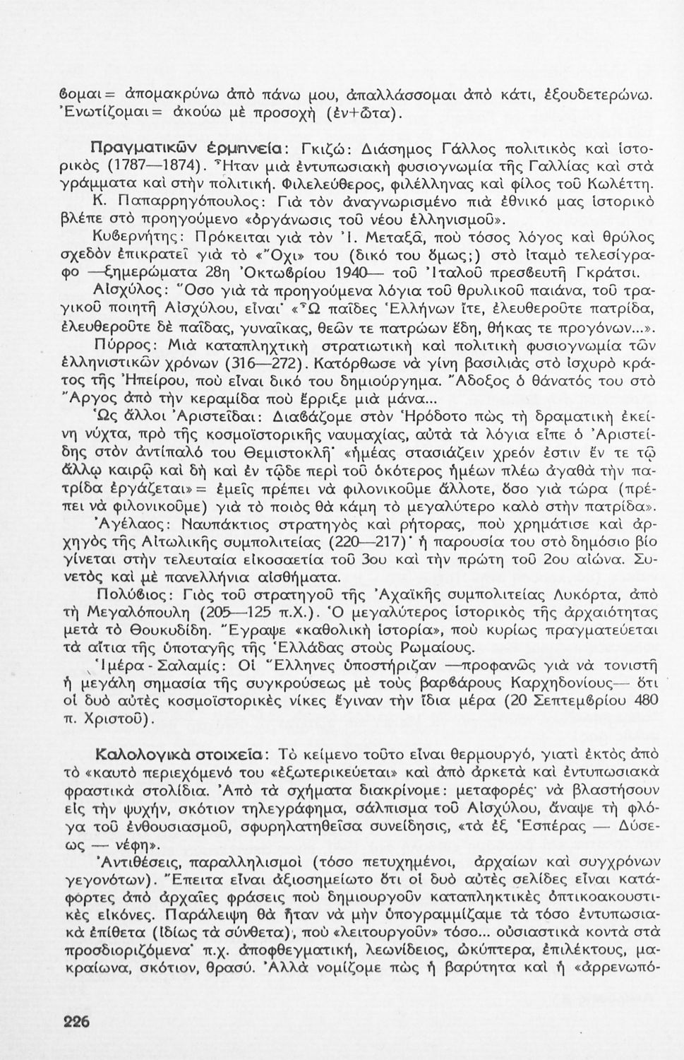 Μαθητικό βοήθημα Νέων Ελληνικών για την Ε΄ και ΣΤ΄ Γυμνασίου που περιλαμβάνει αναλύσεις των κειμένων των αντίστοιχων σχολικών εγχειριδίων από νοηματική, ερμηνευτική και γλωσσική σκοπιά. Περιέχει και βιογραφίες