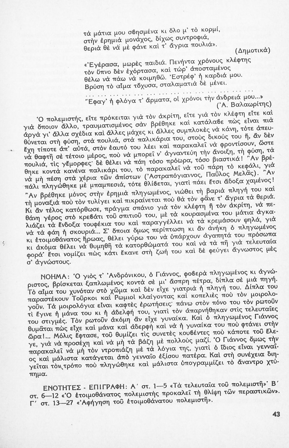 Μαθητικό βοήθημα Νέων Ελληνικών για την Ε΄ και ΣΤ΄ Γυμνασίου που περιλαμβάνει αναλύσεις των κειμένων των αντίστοιχων σχολικών εγχειριδίων από νοηματική, ερμηνευτική και γλωσσική σκοπιά. Περιέχει και βιογραφίες