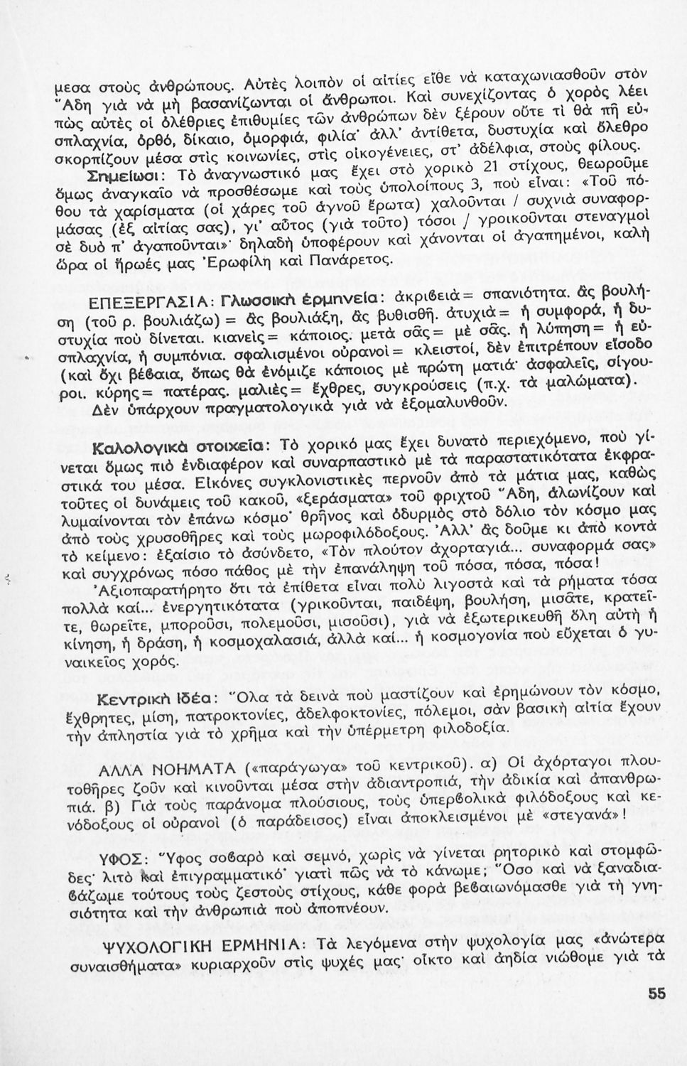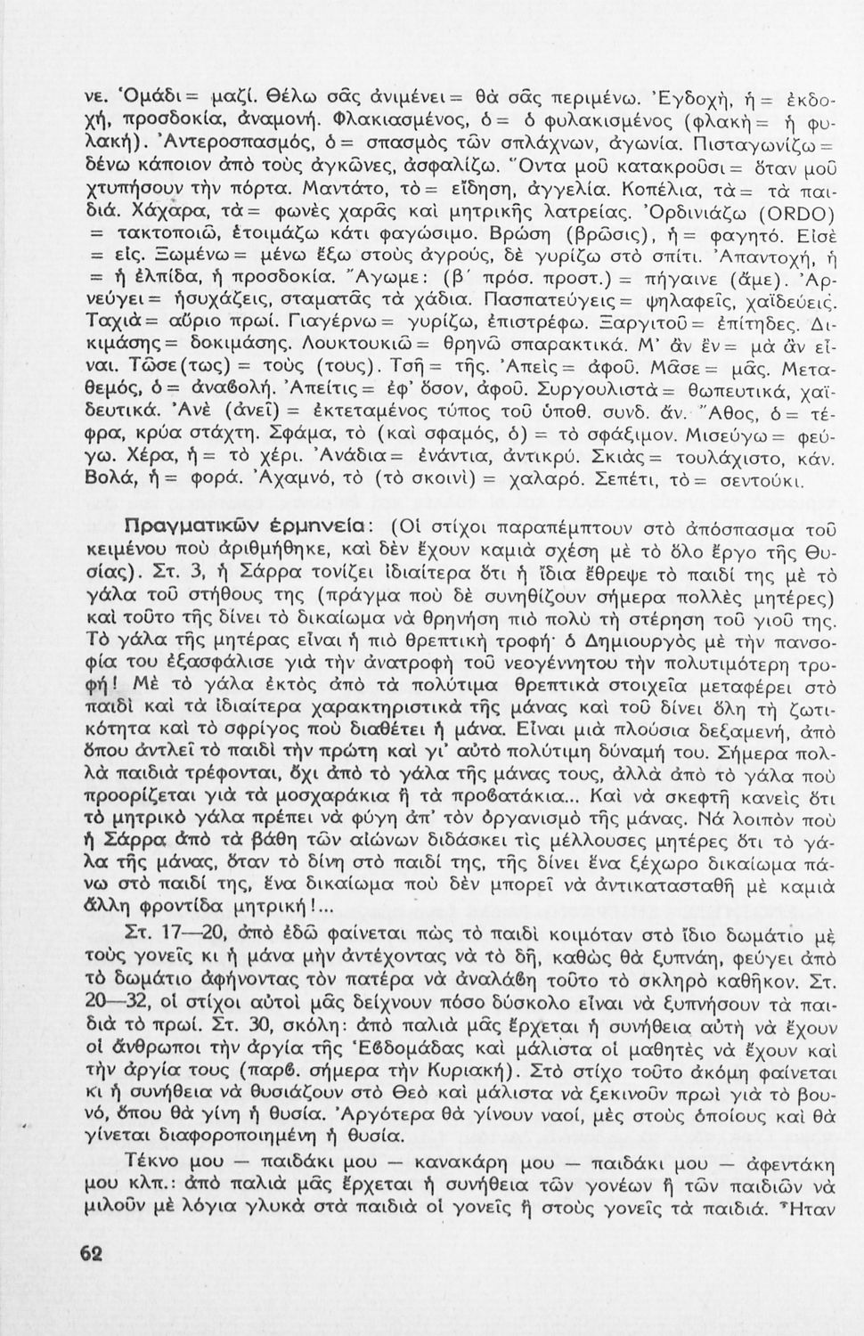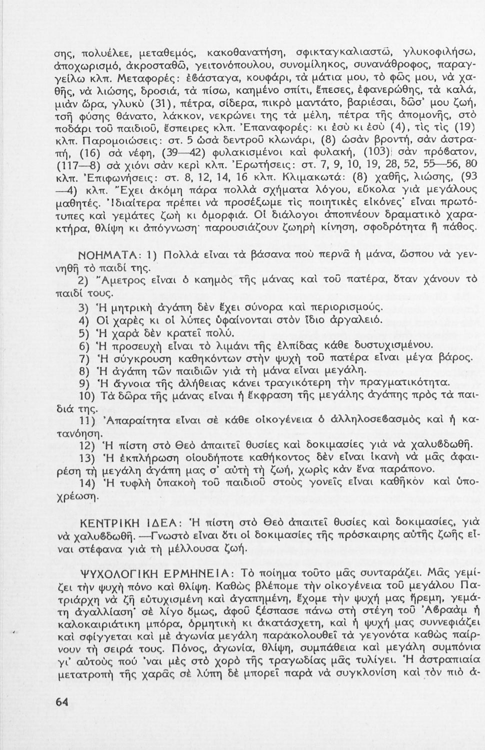 Μαθητικό βοήθημα Νέων Ελληνικών για την Ε΄ και ΣΤ΄ Γυμνασίου που περιλαμβάνει αναλύσεις των κειμένων των αντίστοιχων σχολικών εγχειριδίων από νοηματική, ερμηνευτική και γλωσσική σκοπιά. Περιέχει και βιογραφίες