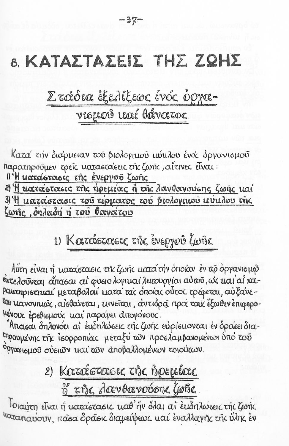 Σχολικό εγχειρίδιο Βιολογίας Δ΄ Γυμνασίου που εστιάζει στις συνθήκες γέννησης, μεταβολής και θανάτου των έμβιων οργανισμών. Ο συγγραφέας ήταν καθηγητής της γενικής Βιολογίας στο Πανεπιστήμιο Αθηνών.