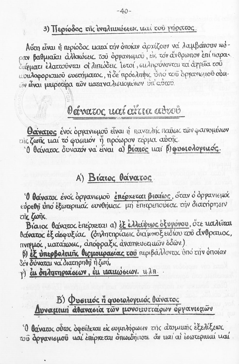 Σχολικό εγχειρίδιο Βιολογίας ΣΤ΄ Γυμνασίου που εστιάζει στις συνθήκες γέννησης, μεταβολής και θανάτου των έμβιων οργανισμών. Φέρει το σύμβολο της δικτατορίας. Ο συγγραφέας ήταν υφηγητής του Πανεπιστημίου ...