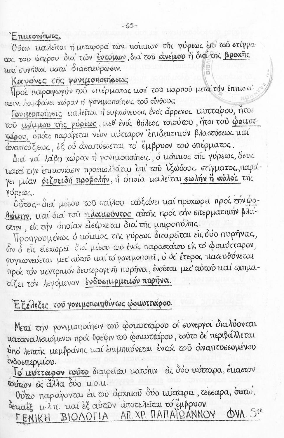 Μάθημα:  Βιολογία
