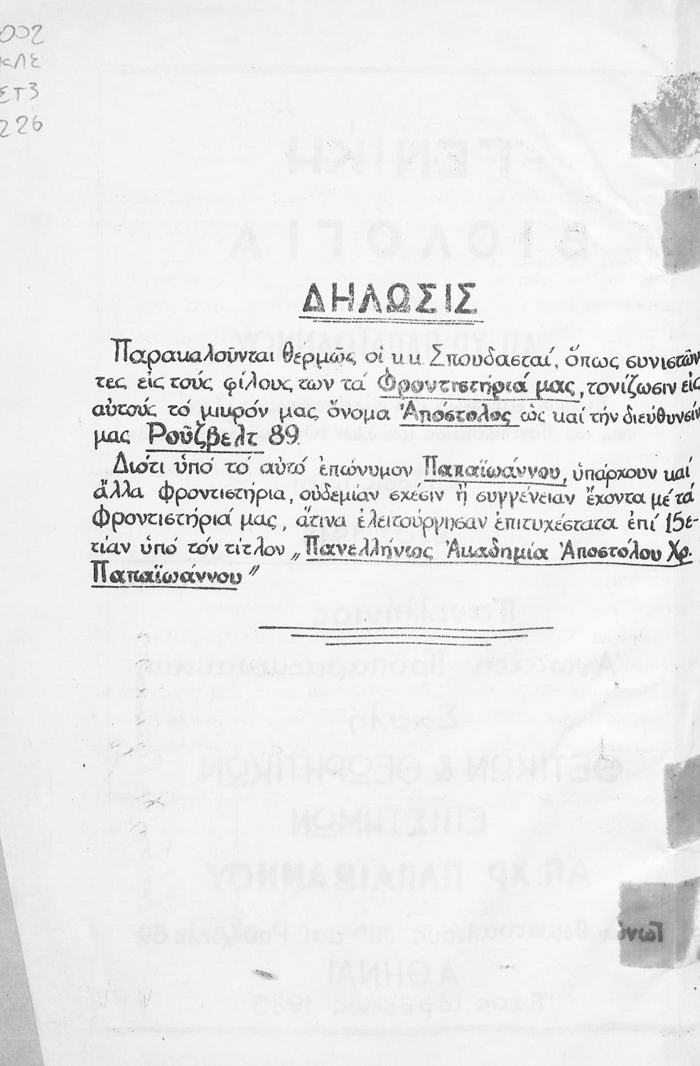 Εκδότης: Πανελλήνιος Ανωτάτη Προπαρασκευαστική Σχολή Έτος έκδοσης: 1948 Τόπος έκδοσης: Αθήνα Έκδοση: 3η |