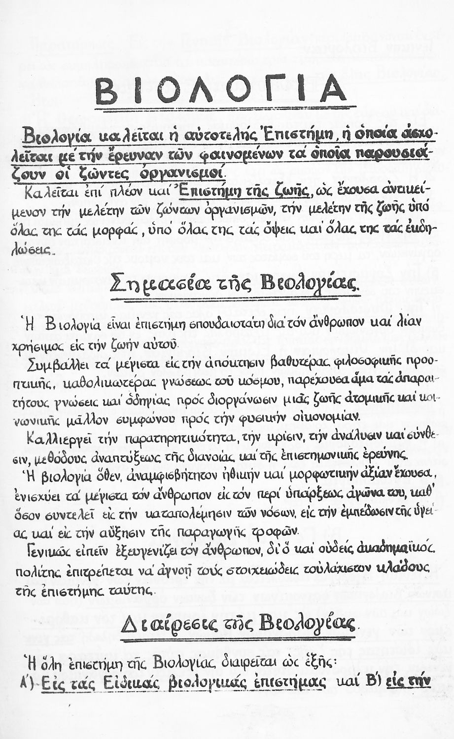 Βαθμίδα εκπαίδευσης: Δευτεροβάθμια Μάθημα: Βιολογία Γλώσσα: Απλή καθαρεύουσα Παρουσίαση περιεχομένου: Μαθητικό βοήθημα Βιολογίας για τους υποψήφιους των Ανωτάτων Σχολών που εστιάζει στη δομή και εξέλιξη των έμβιων οργανισμών και τη σχέση τους με το περιβάλλον. |