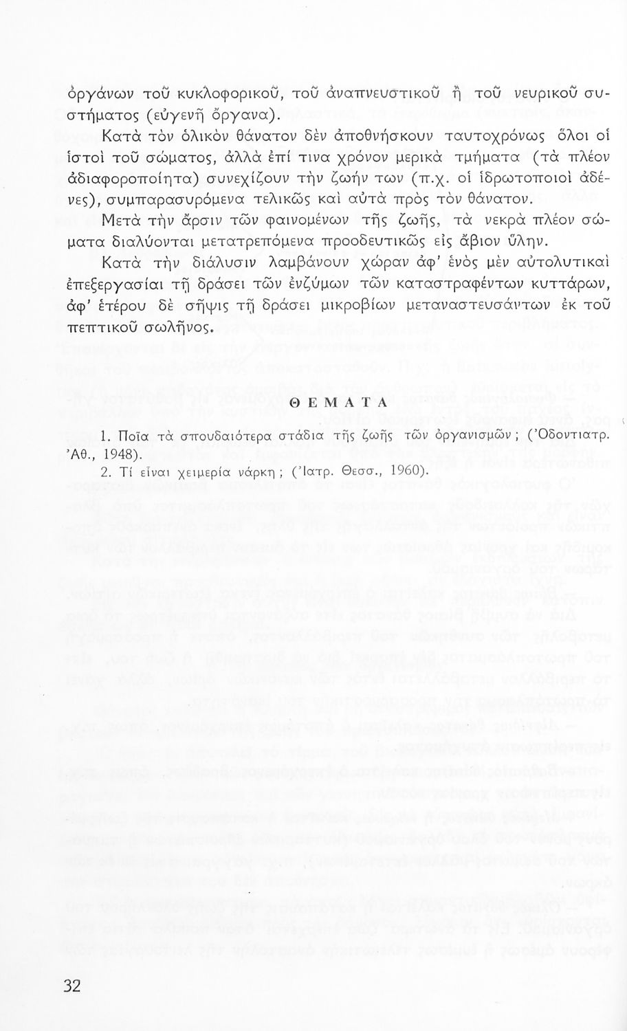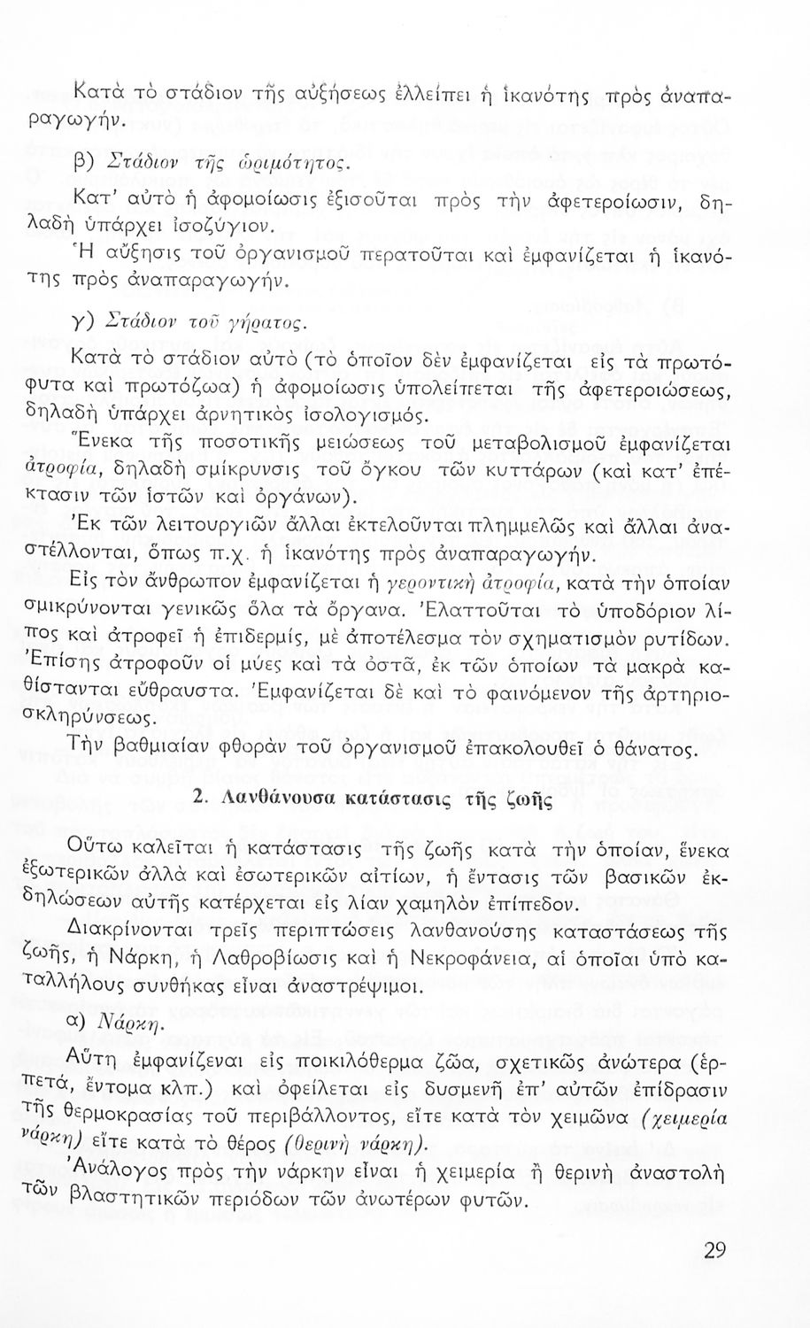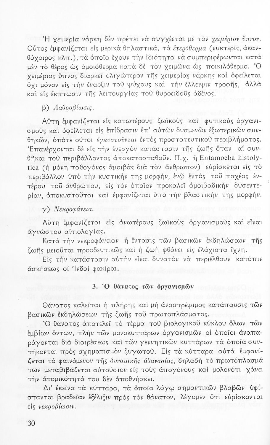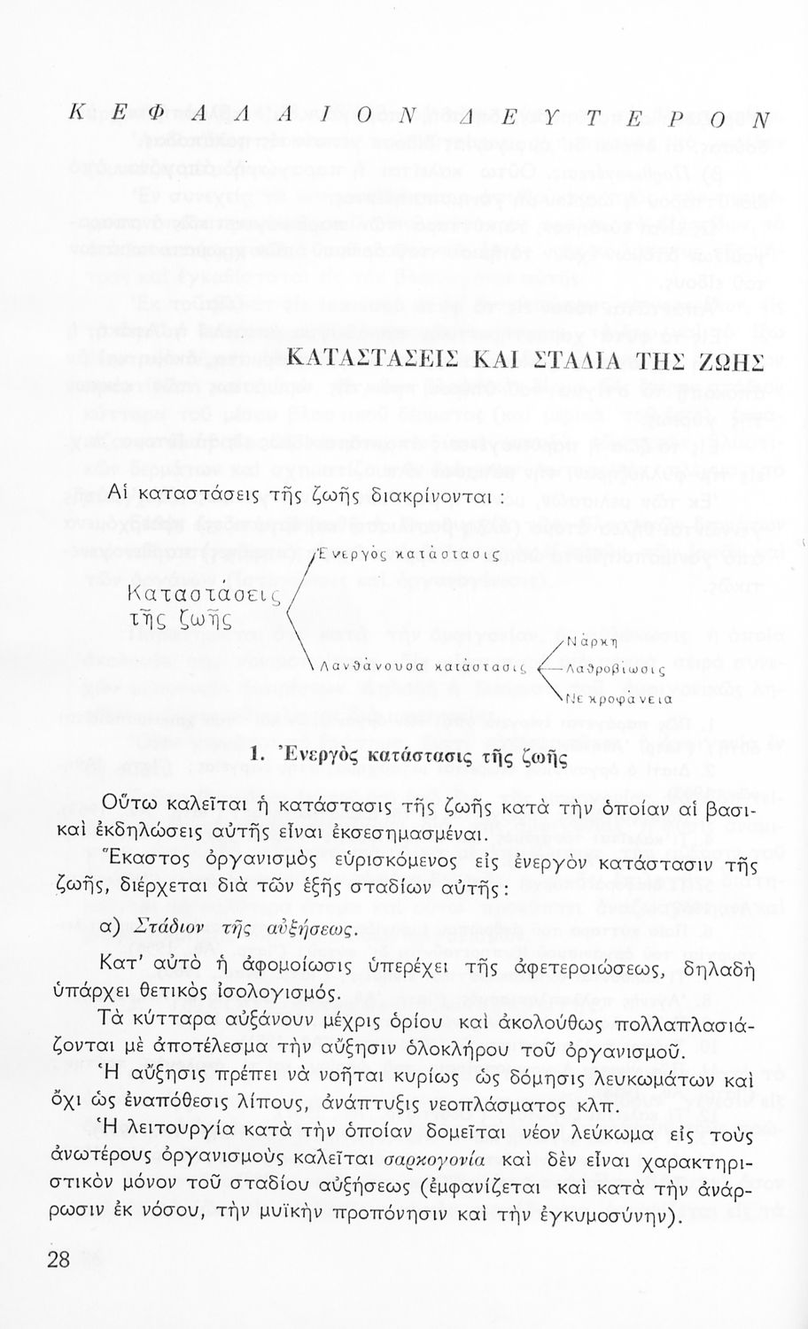 Σχολικό εγχειρίδιο Βιολογίας Δ΄ Γυμνασίου που εστιάζει στις συνθήκες γέννησης, μεταβολής και θανάτου των έμβιων οργανισμών. Ο συγγραφέας ήταν καθηγητής της γενικής Βιολογίας στο Πανεπιστήμιο Αθηνών.
