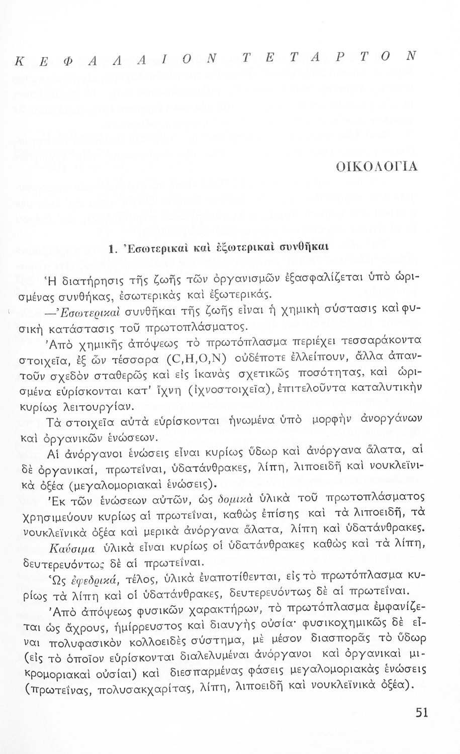 Σχολικό εγχειρίδιο Βιολογίας Δ΄ Γυμνασίου που εστιάζει στις συνθήκες γέννησης, μεταβολής και θανάτου των έμβιων οργανισμών. Ο συγγραφέας ήταν καθηγητής της γενικής Βιολογίας στο Πανεπιστήμιο Αθηνών.