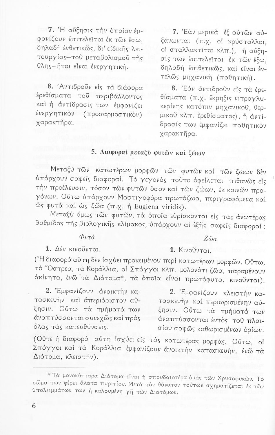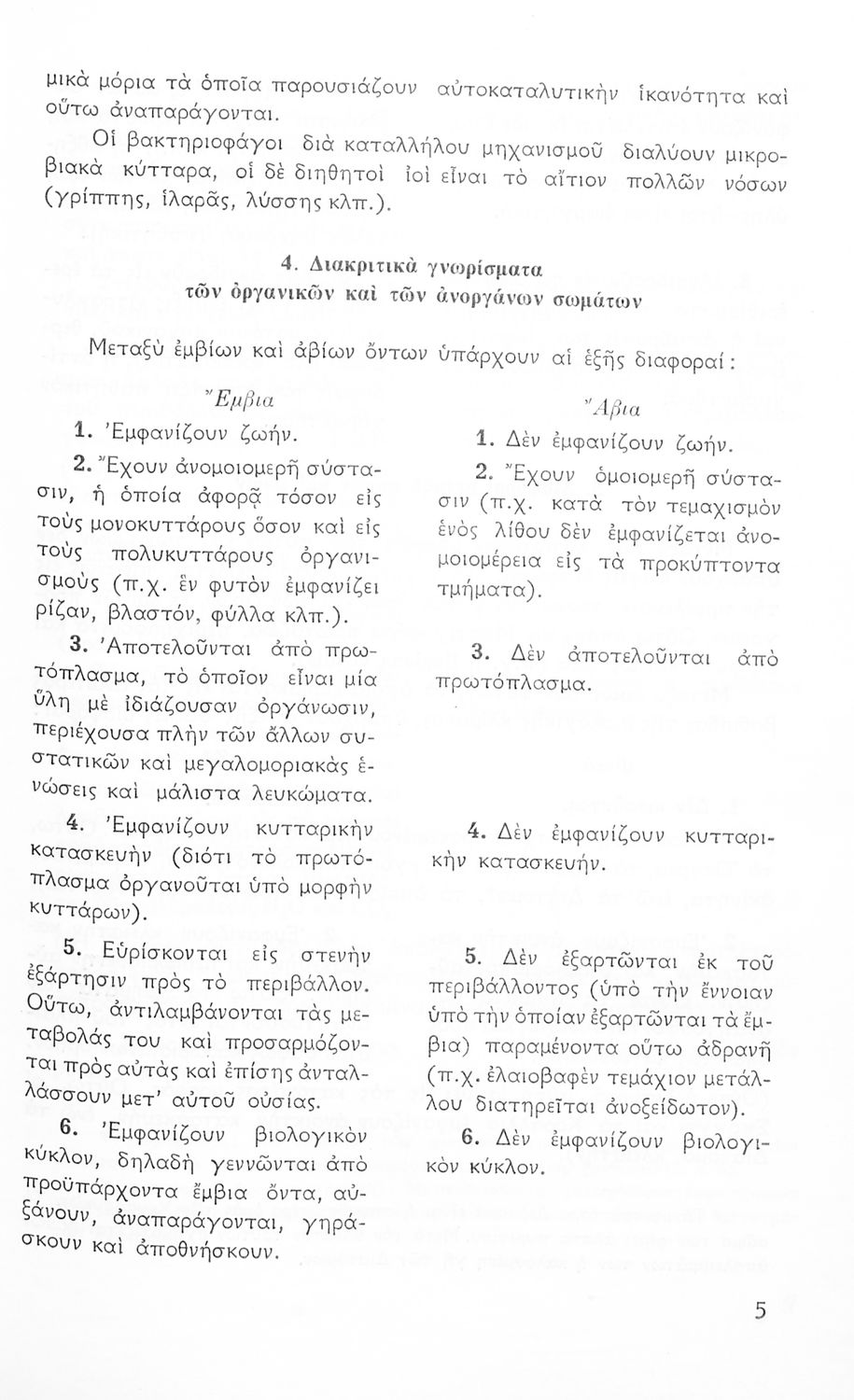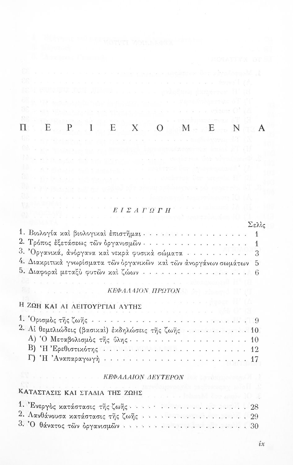 Σχολικό εγχειρίδιο Βιολογίας Δ΄ Γυμνασίου που εστιάζει στις συνθήκες γέννησης, μεταβολής και θανάτου των έμβιων οργανισμών. Ο συγγραφέας ήταν καθηγητής της γενικής Βιολογίας στο Πανεπιστήμιο Αθηνών.
