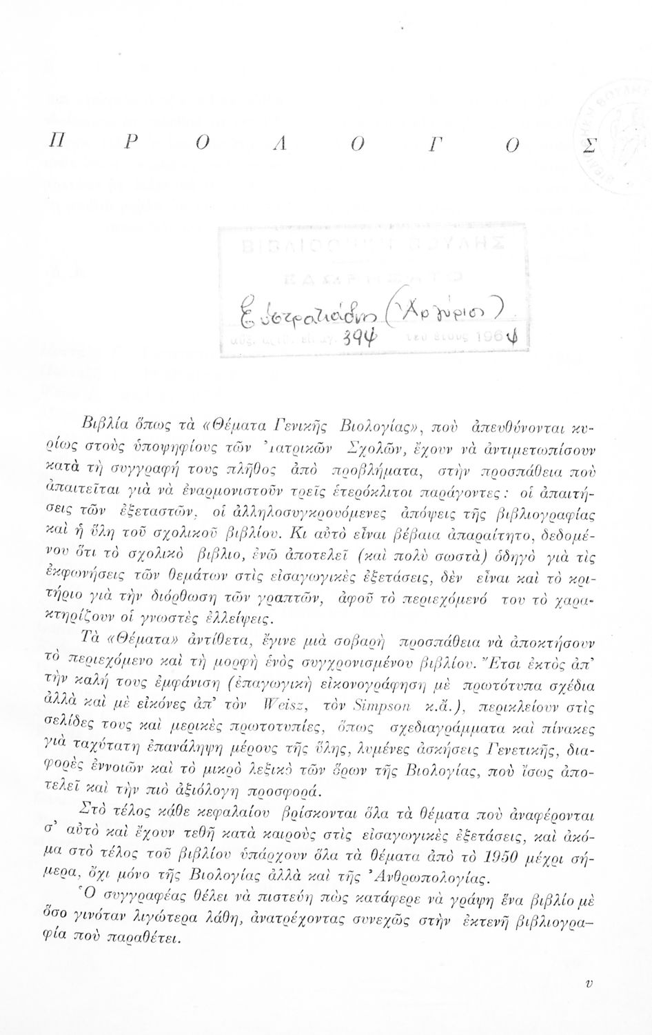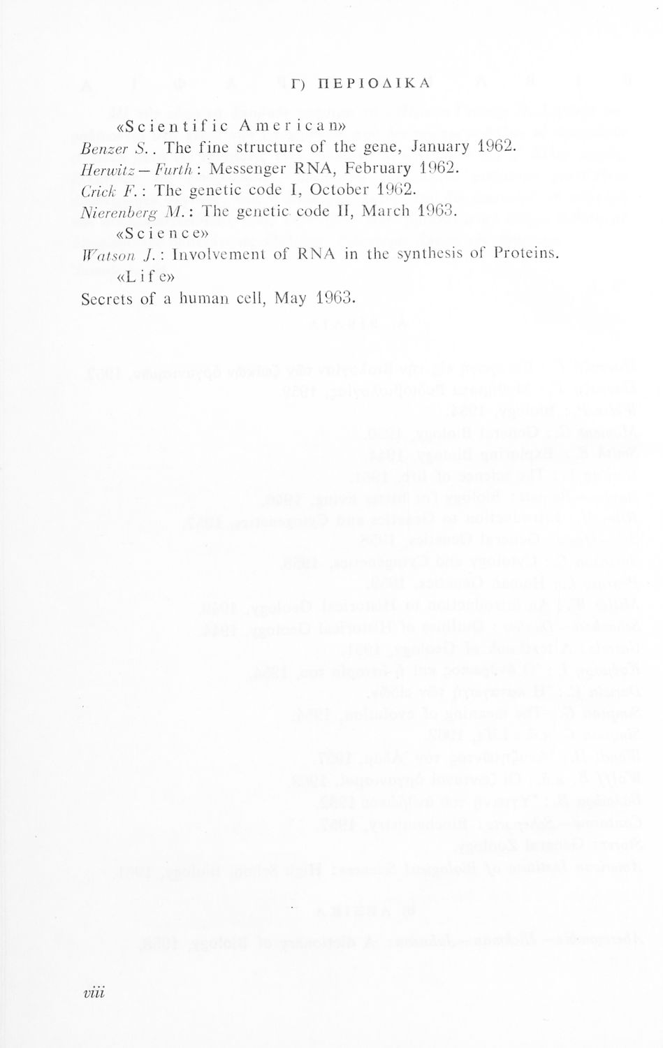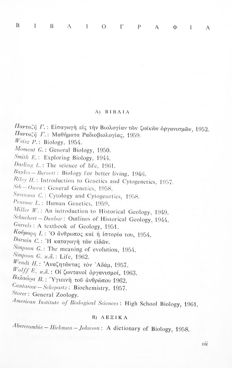 Σχολικό εγχειρίδιο Βιολογίας Δ΄ Γυμνασίου που εστιάζει στις συνθήκες γέννησης, μεταβολής και θανάτου των έμβιων οργανισμών. Ο συγγραφέας ήταν καθηγητής της γενικής Βιολογίας στο Πανεπιστήμιο Αθηνών.