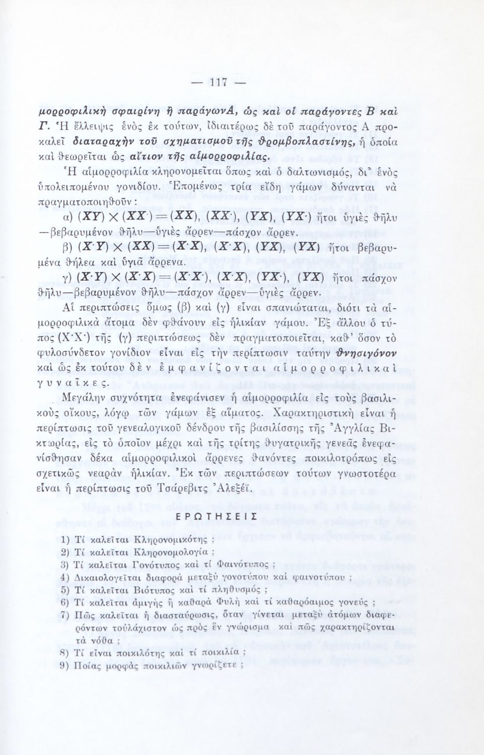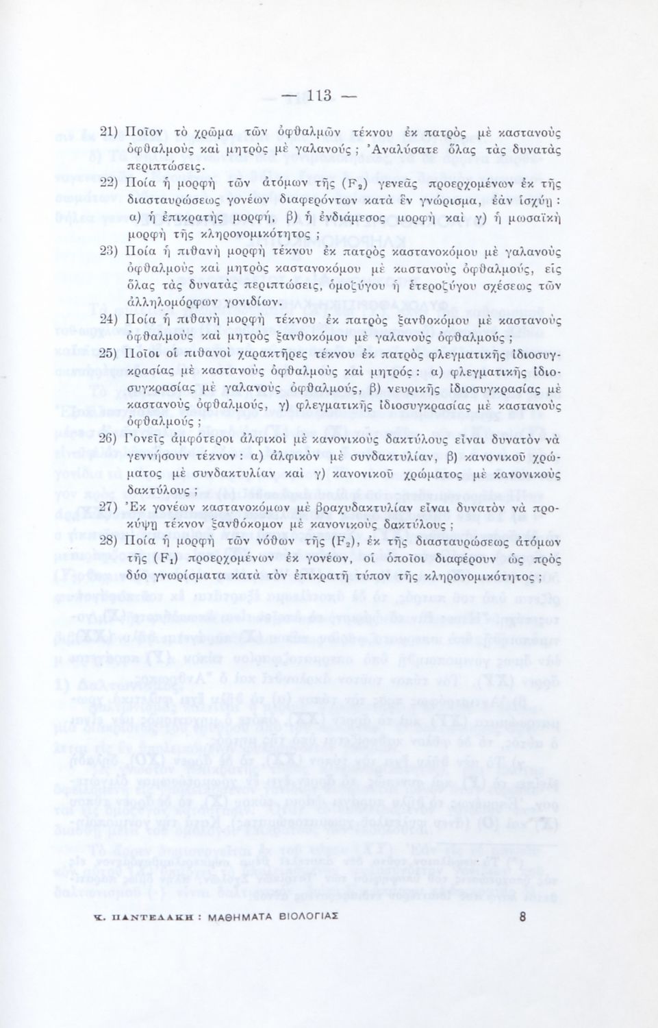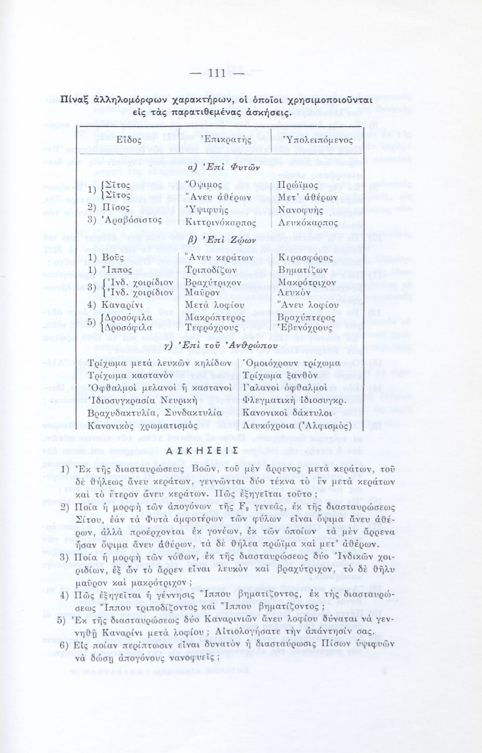 Μαθητικό βοήθημα Βιολογίας για τους Σπουδαστές των Παιδαγωγικών Ακαδημιών, τους μαθητές των Γυμνασίων και τους υποψήφιους των Ιατρικών Σχολών που περιέχει πλήθος ερωτήσεων και ασκήσεων σχετικά με ζήτημα Γενετικής.