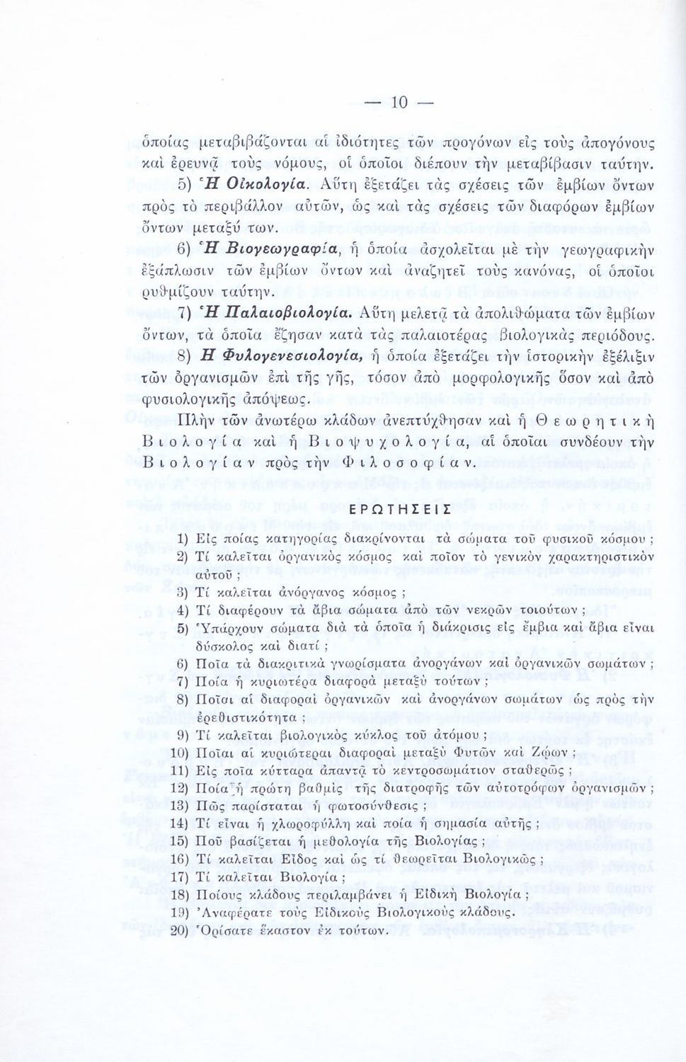 Σχολικό εγχειρίδιο Βιολογίας ΣΤ΄ Γυμνασίου που εστιάζει στις συνθήκες γέννησης, μεταβολής και θανάτου των έμβιων οργανισμών. Φέρει το σύμβολο της δικτατορίας. Ο συγγραφέας ήταν υφηγητής του Πανεπιστημίου ...