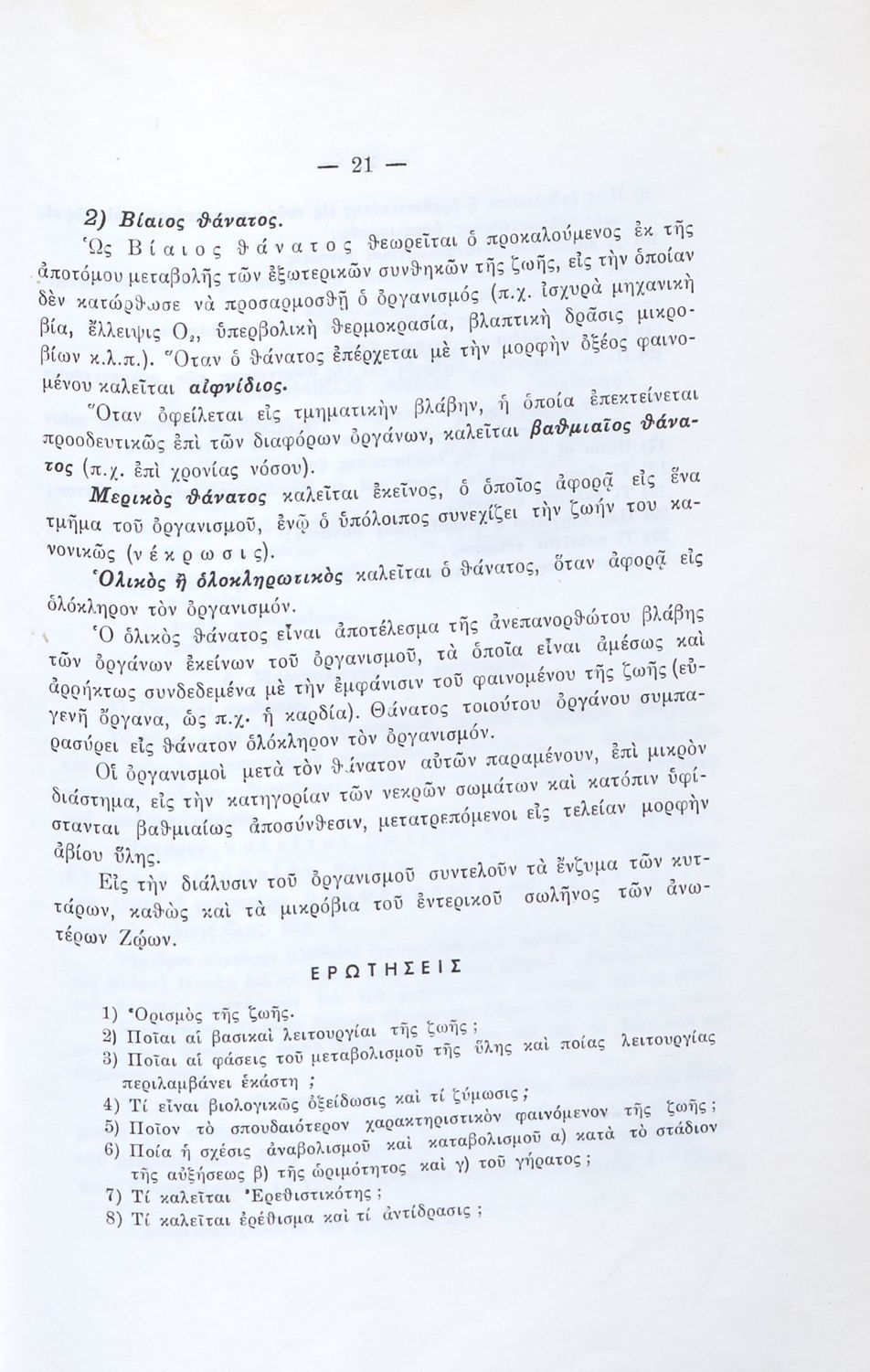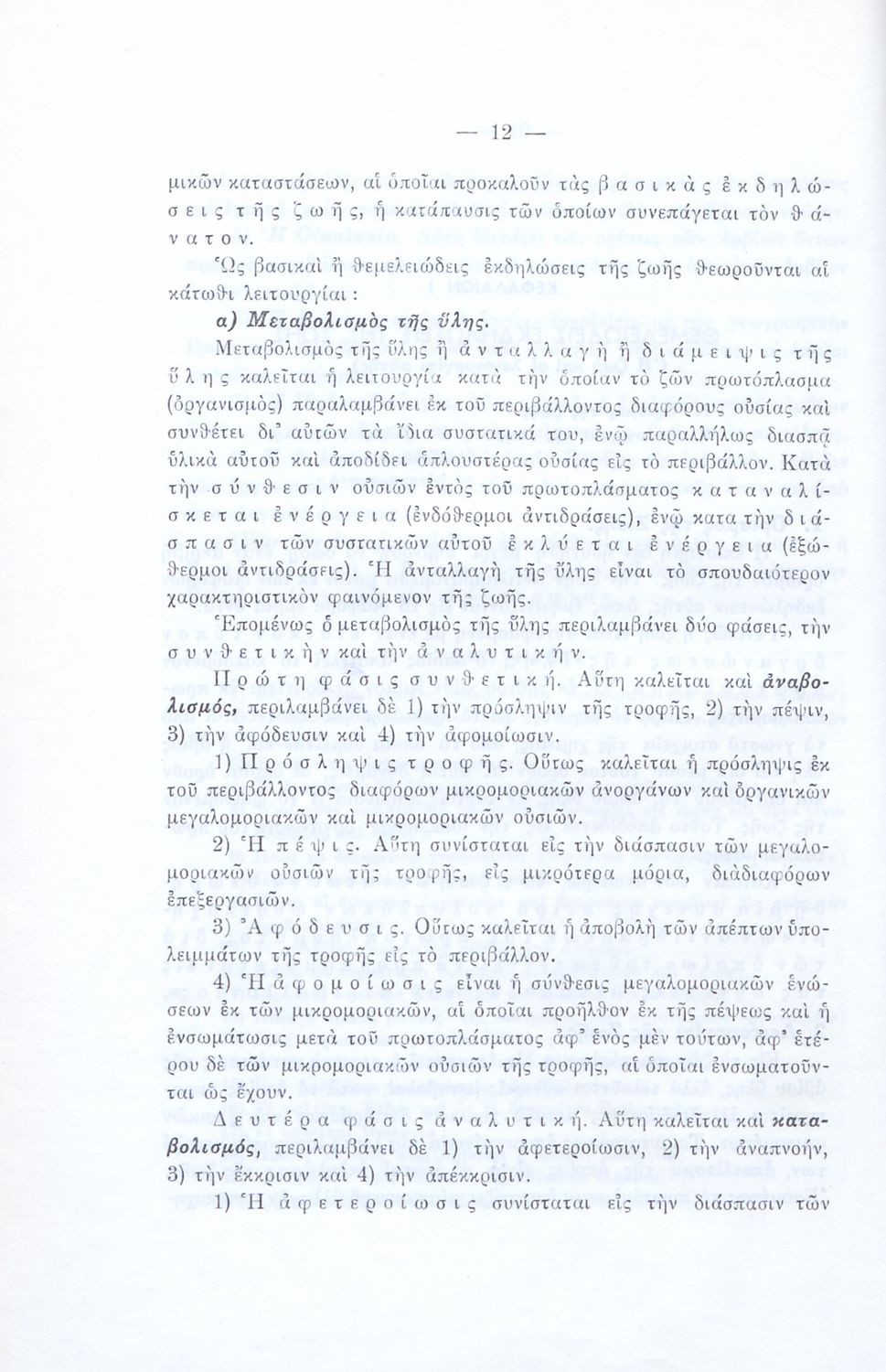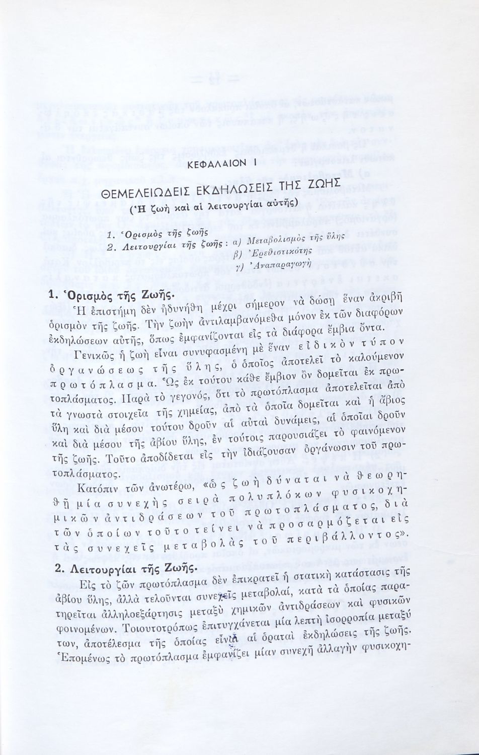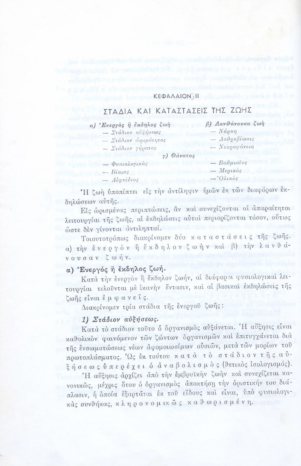 Σχολικό εγχειρίδιο Βιολογίας ΣΤ΄ Γυμνασίου που εστιάζει στις συνθήκες γέννησης, μεταβολής και θανάτου των έμβιων οργανισμών. Ο συγγραφέας ήταν υφηγητής του Πανεπιστημίου Αθηνών.