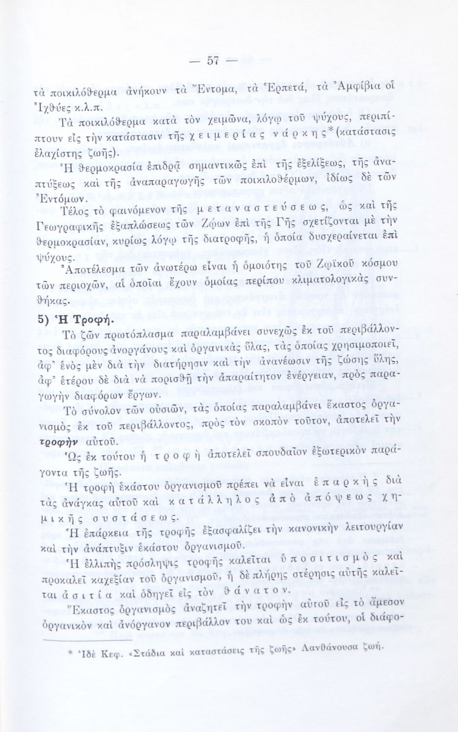 Σχολικό εγχειρίδιο Βιολογίας ΣΤ΄ Γυμνασίου που εστιάζει στις συνθήκες γέννησης, μεταβολής και θανάτου των έμβιων οργανισμών. Ο συγγραφέας ήταν υφηγητής του Πανεπιστημίου Αθηνών.