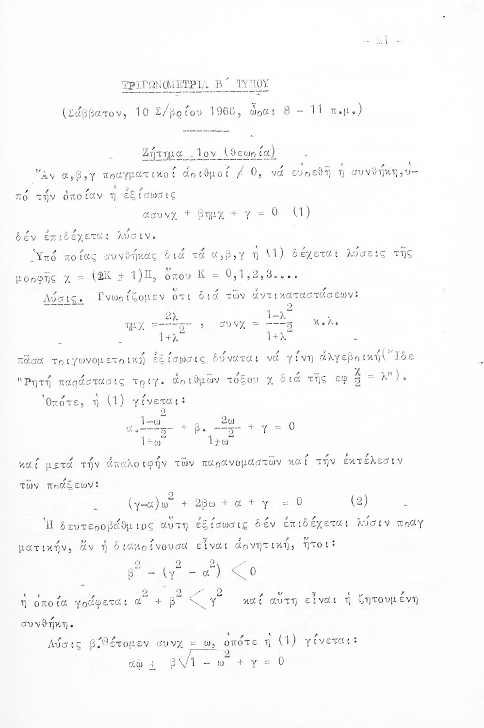 Μαθητικό βοήθημα Μαθηματικών που περιέχει λύσεις των ασκήσεων για τους υποψηφίους του ακαδημαϊκού απολυτηρίου τύπου Α και Β.